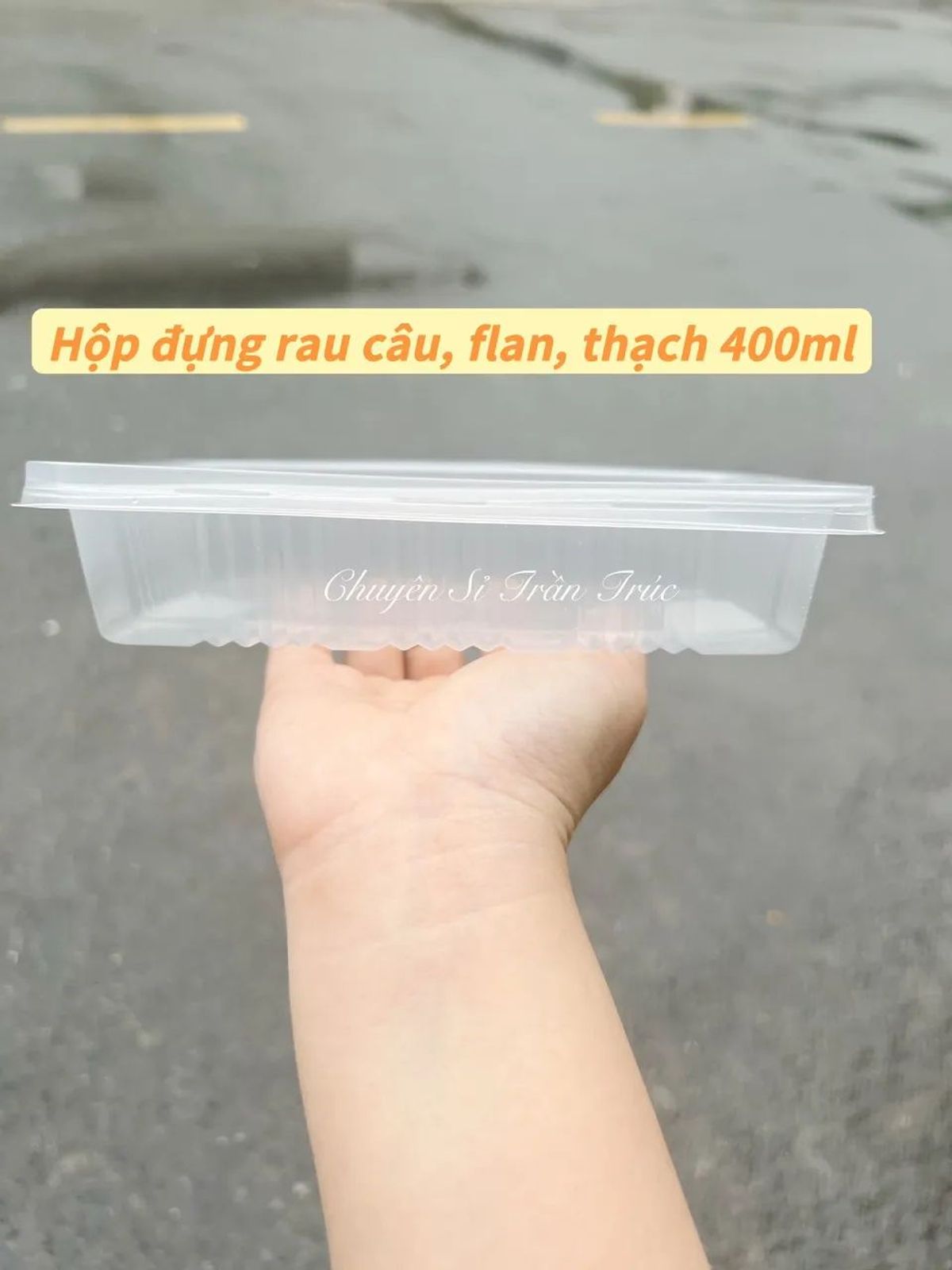 hop chu nhat soc 400ml, hộp nhựa chữ nhật đựng flan