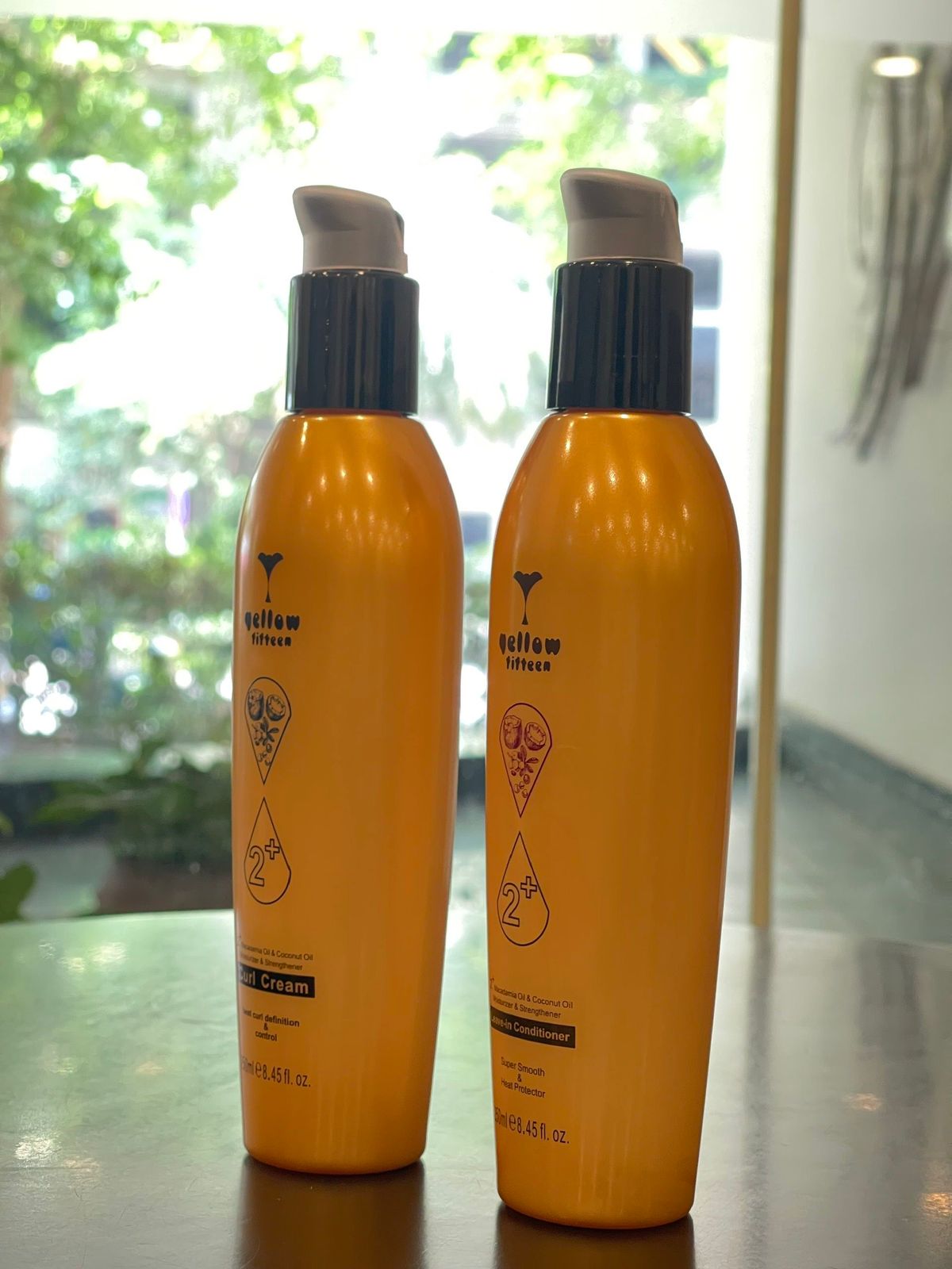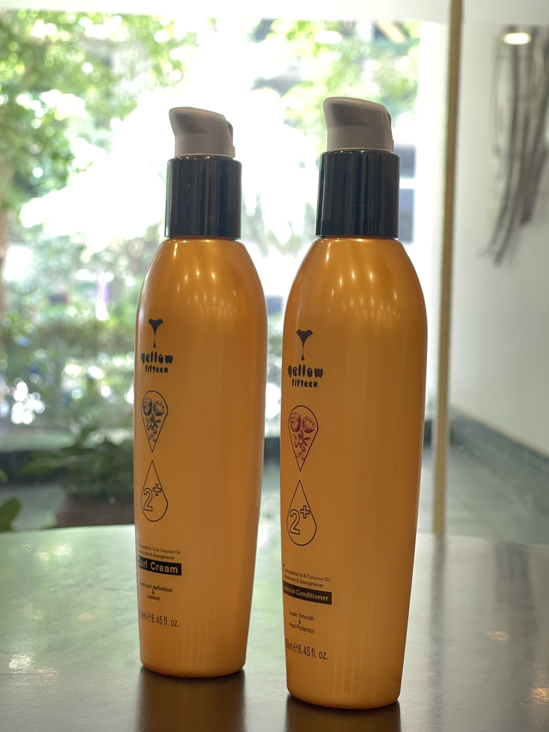 combo kem xả khô và kem tạo nếp tóc xoăn Yellow Titteen cho mái tóc suôn mượt và nuôi dưỡng tóc từ sâu bên trong với các thành phần chiết xuất từ thiên nhiên mang lại mùi hương thoang thoảng dễ chịu. Không gây kích ứng cho da đầu, giúp giữ nếp tóc suốt cả ngày dài.