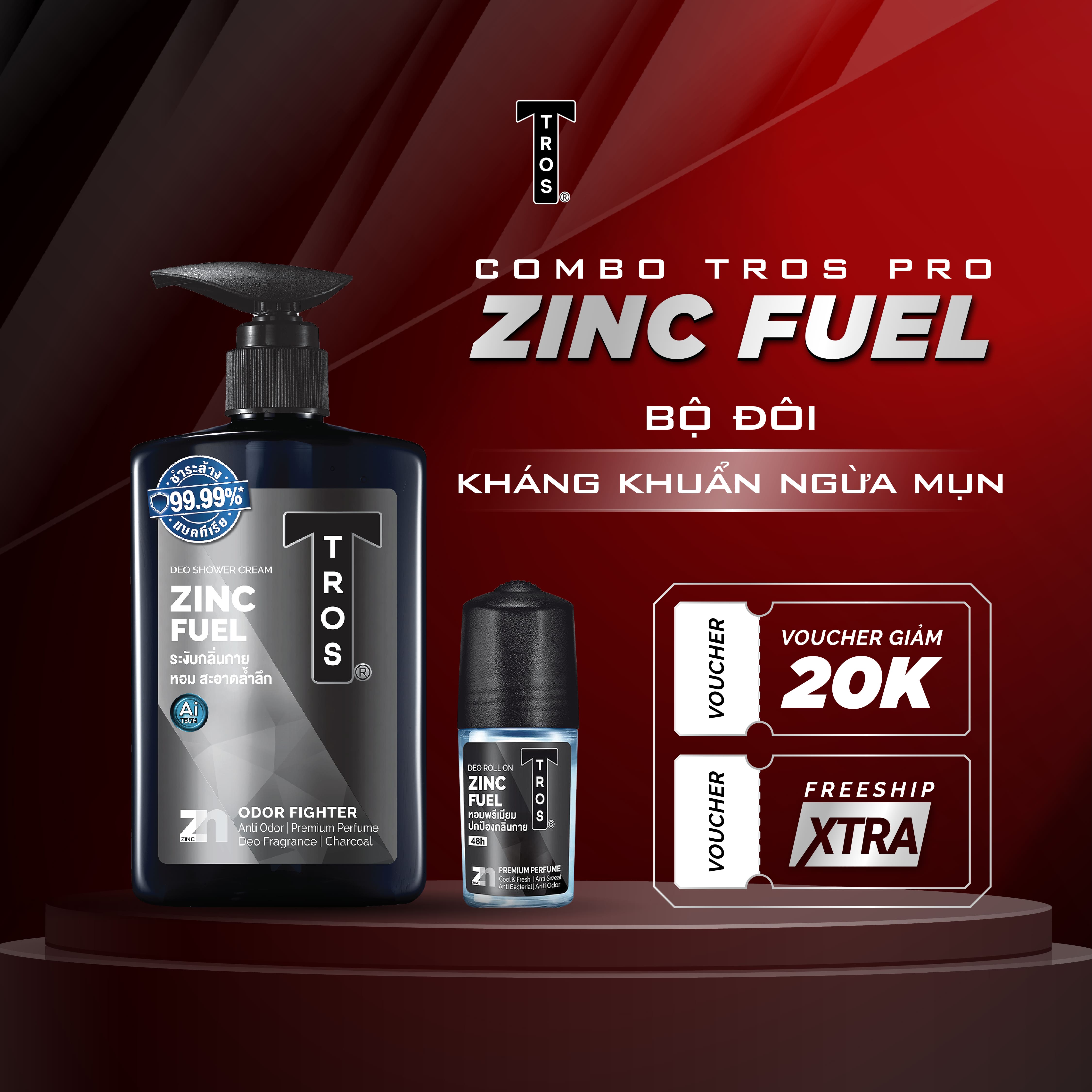 Combo kháng khuẩn ngăn mụn TROS ZinC Fuel sạch sâu, loại bỏ dầu nhờn và bụi bẩn, ngăn ngừa mụn Thái Lan