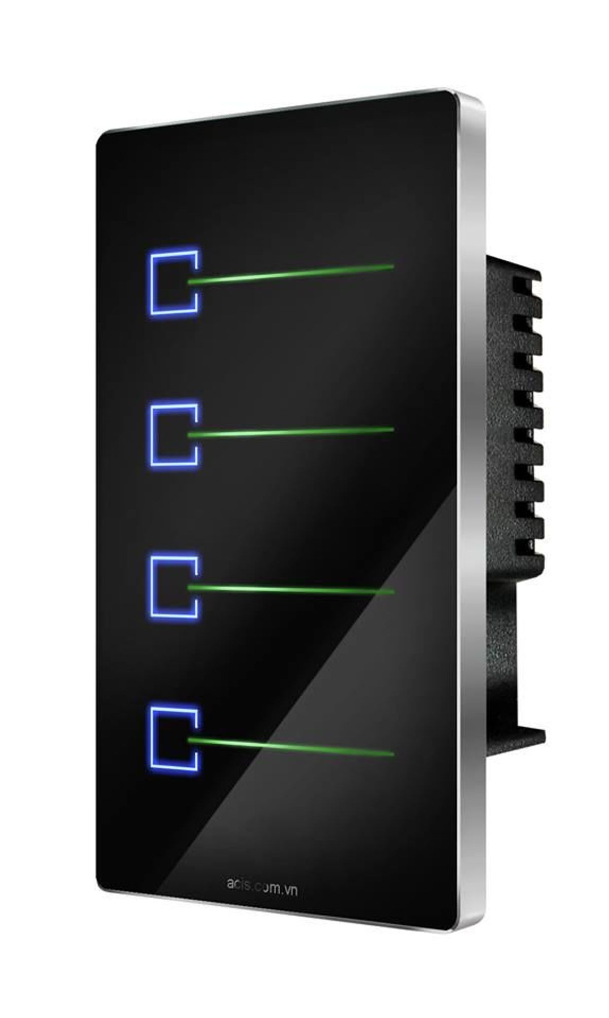 Công tắc Smart Switch có 4 nút điều khiển cảm ứng được hiển thị bằng dải đèn LED để dễ dàng nhìn thấy trong tối.