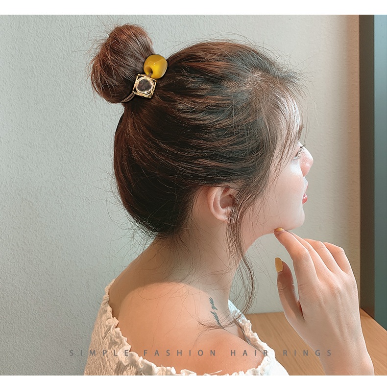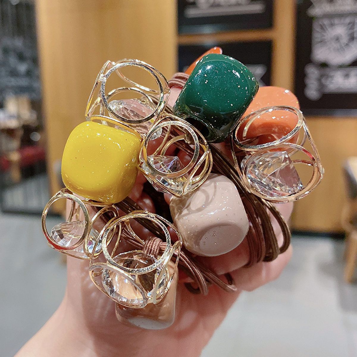 Hợp kim rỗng pha lê vòng tóc dây buộc tóc Phiên bản Hàn Quốc của dây buộc tóc đơn giản Dây chun buộc dây cao su đàn hồi cao lưới cô gái màu trơn