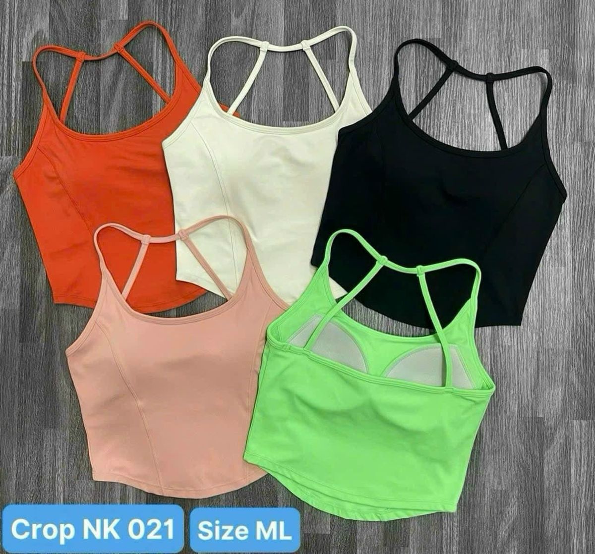 Áo dây vạt bầu, mút đúc có bo giữ ngực tiện lợi, chất thun lạnh xịn mịn.