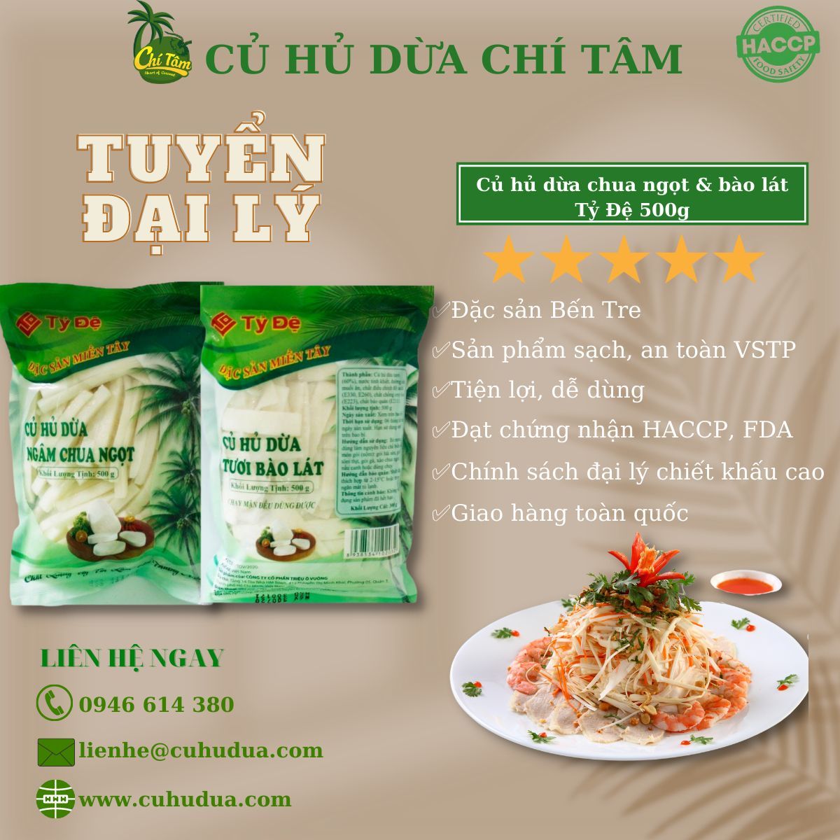 100% sản phẩm củ hủ dừa chế biến từ Chí Tâm được qua công đoạn tiệt trùng trước khi xuất xưởng để đảm bảo đến tay người tiêu dùng sử dụng ăn toàn, hợp vệ sinh tuyệt đối.