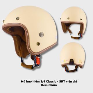 Mũ bảo hiểm 3/4 SRT Classic viền chỉ, tặng kèm lưỡi trai