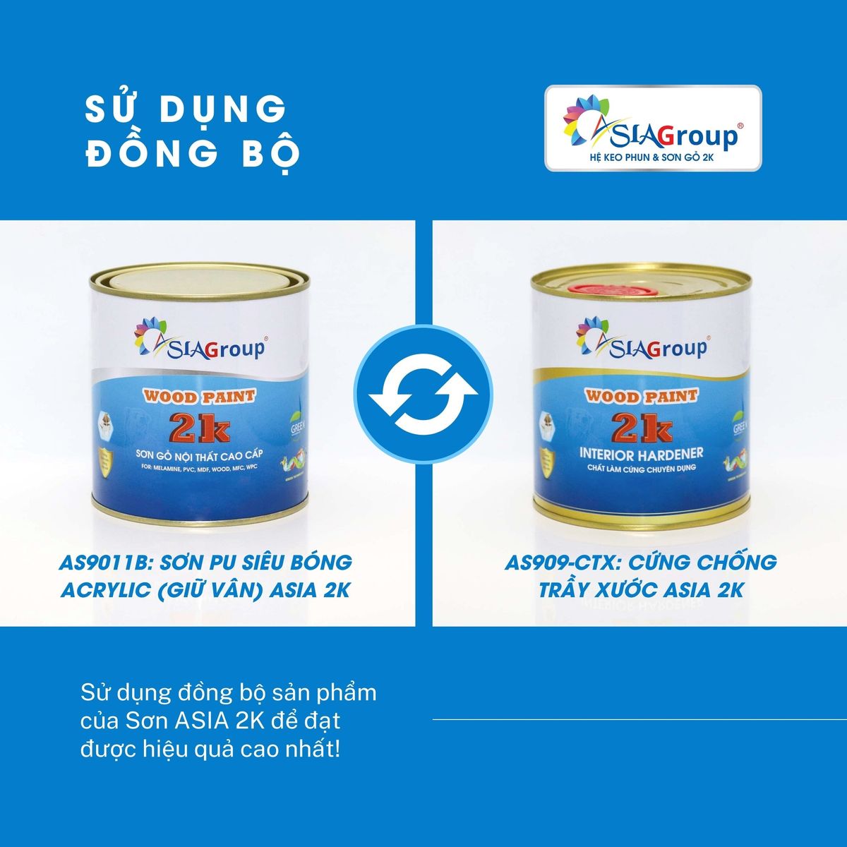 Cứng chống trầy xước AS909-CTX được sử dụng đồng bộ cùng Sơn PU Siêu bóng Acrylic AS9011B và Sơn Phủ Mờ PU AS9012 để tạo ra bề mặt đanh cứng chống trầy xước, kháng tia UV, duy trì độ bền màu với các phụ gia đạt tiêu chuẩn Châu Âu.