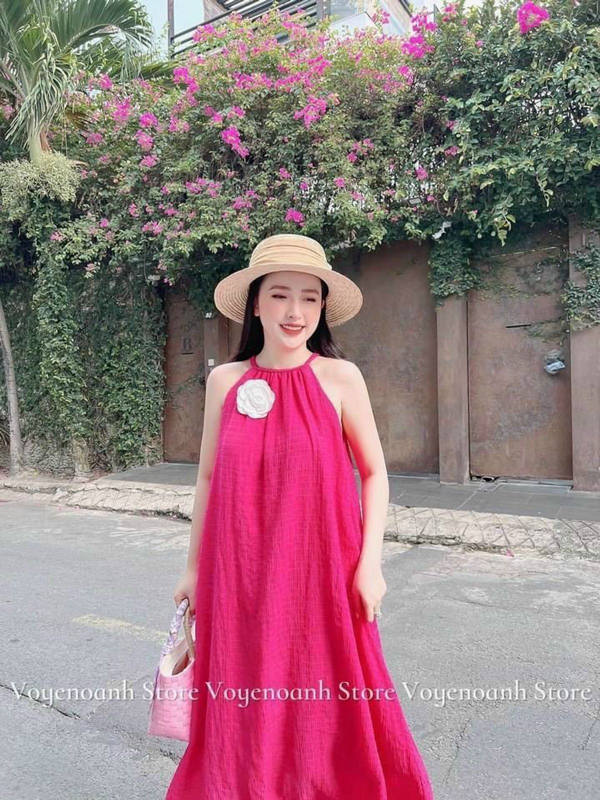 Đầm yếm kèm hoa chất vải xốp mềm mịn, thoáng mát, giá cực iuuuu