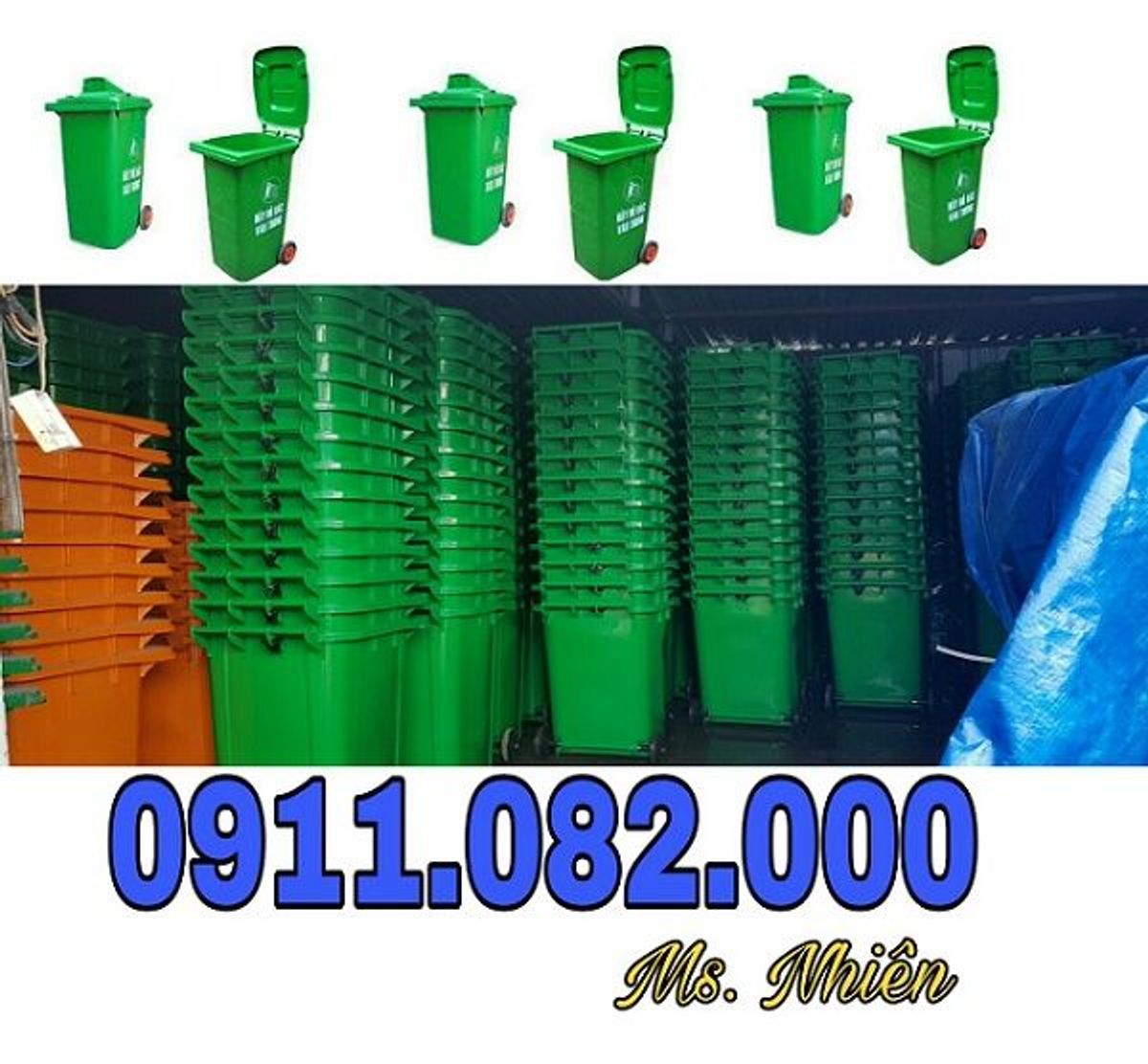 Thùng rác công nghiệp 120l, 240l, 660l nhựa HDPE hàng mới nhập kho cung cấp với giá sỉ- -Ms. Nhiên