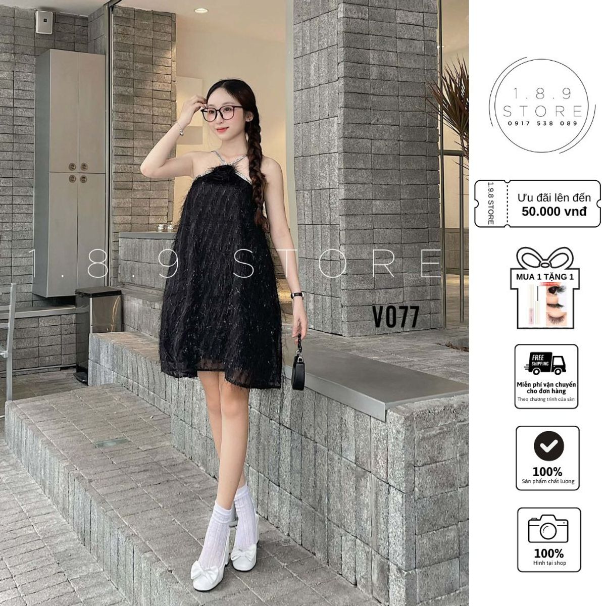 Đầm Babydoll Dáng Suông Cổ Yếm Phối Hoa Đính Lông Vũ Cực Kỳ Sang Chảnh Chất Lượng