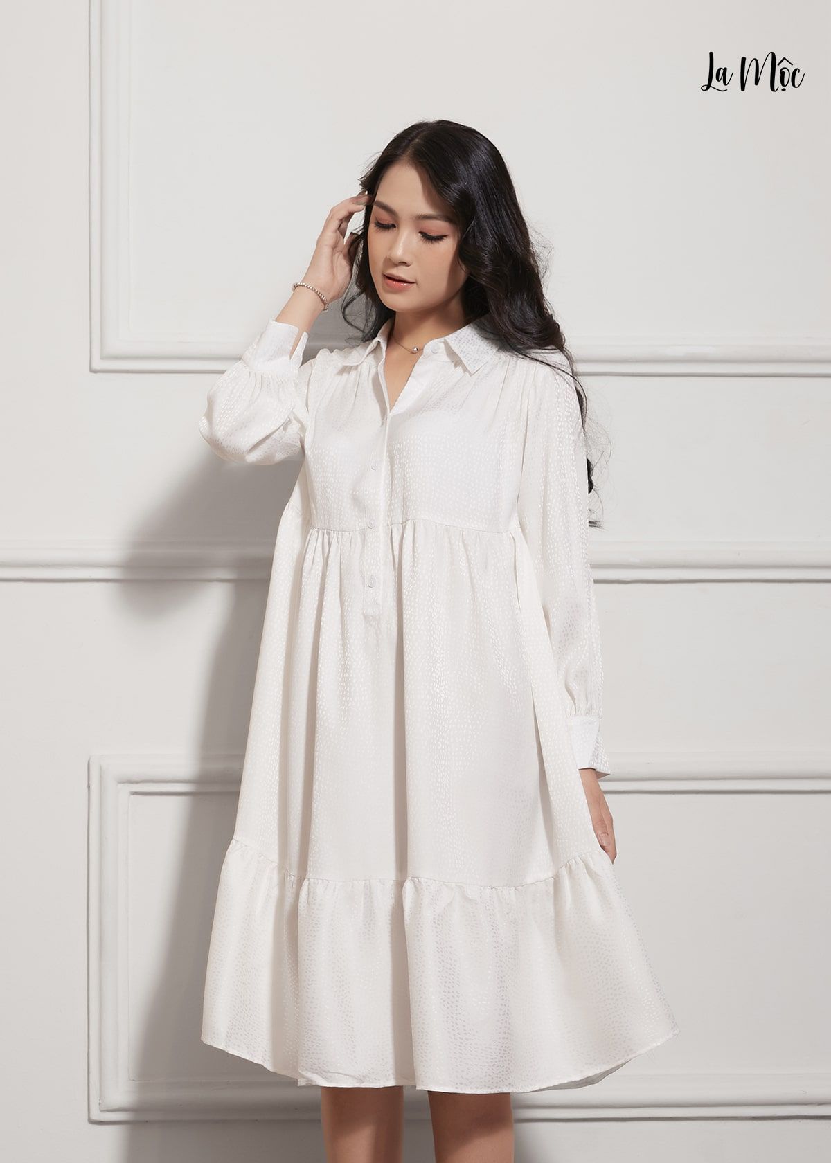 Đầm babydoll, đầm thiết kế cao cấp LA MỘC, màu kem vải lụa Crep hàn quốc