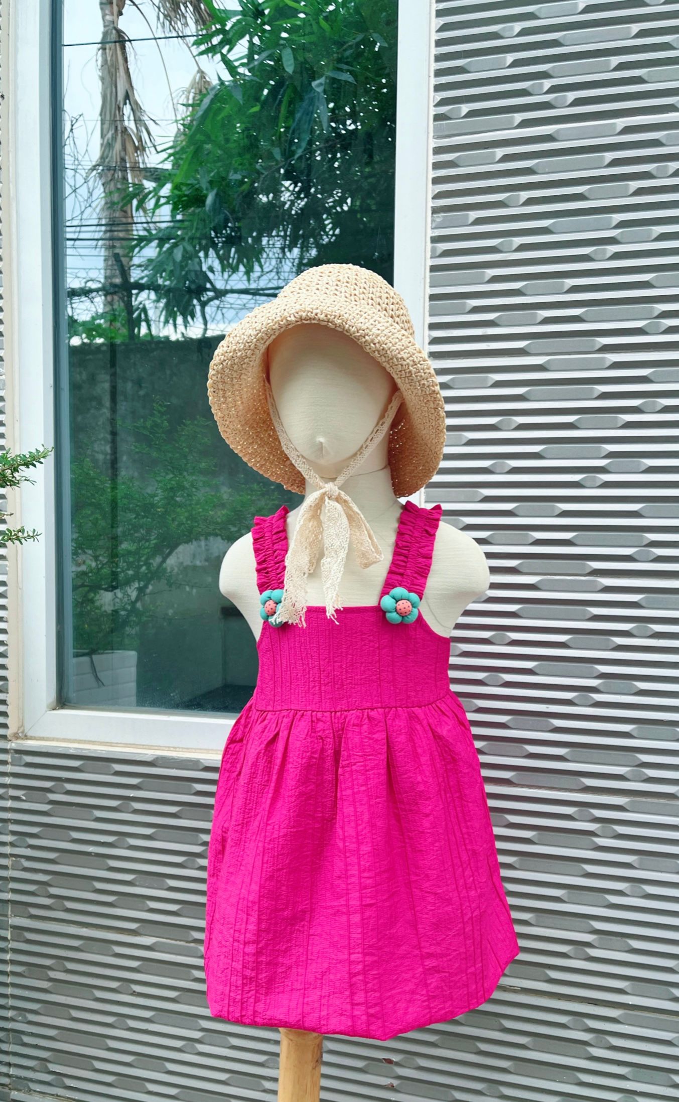 Đầm bé gái xinh baby doll hai dây gắn hoa xinh thích hợp mặc hè mát mẻ cho bé gái từ 2 tuổi đến 7 tuổi giá sỉ/bán buôn