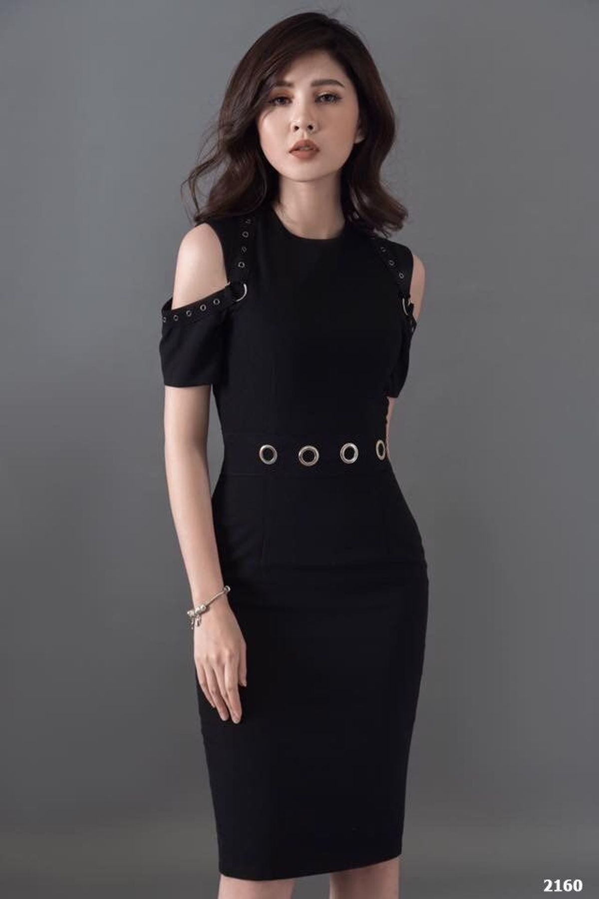 Đầm body đen hở vai 2160