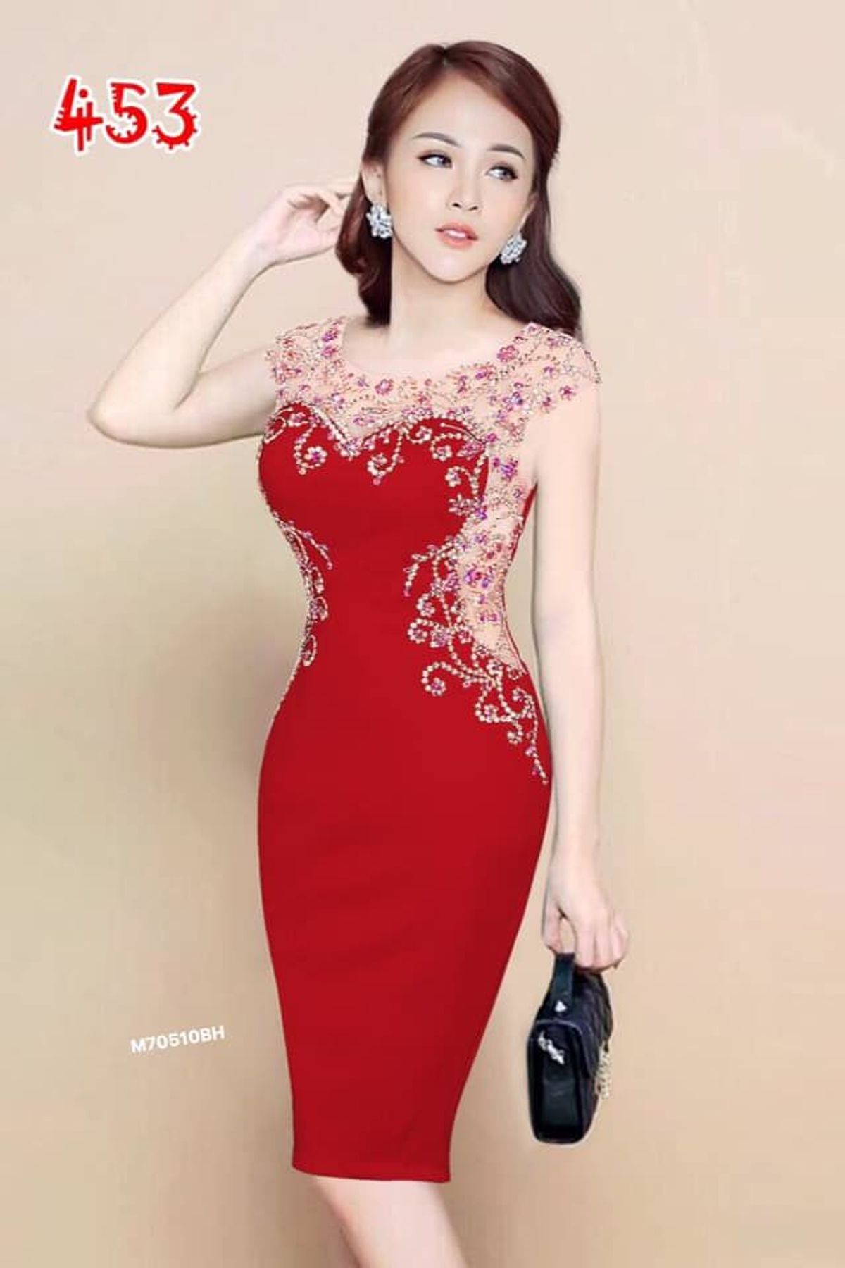 ĐẦM BODY ĐÍNH ĐÁ HOA giá: 370k Màu: đen,đỏ Size M dưới 50kg eo 62=72 Size L dưới 58kg eo 72=79 Size XL dưới 65kg eo 79=85 Chất liệu: thun cotton nhật dầy dặn mềm mịn co dãn tốt đính đá