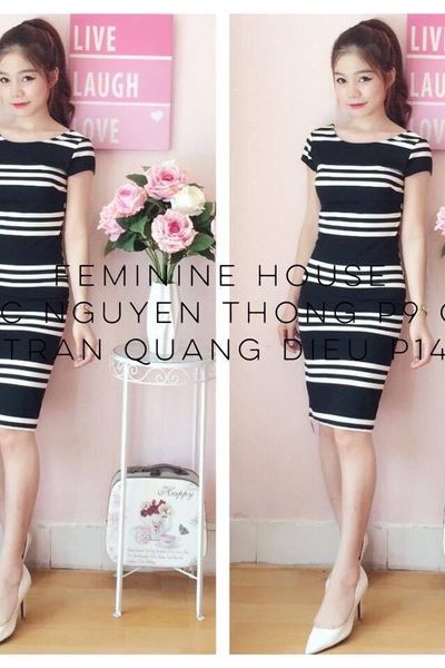 Đầm body tay con form dài sọc ngang Femi Hàng đẹp như hình 100% _Sỉ : 95K Hàng có sẵn