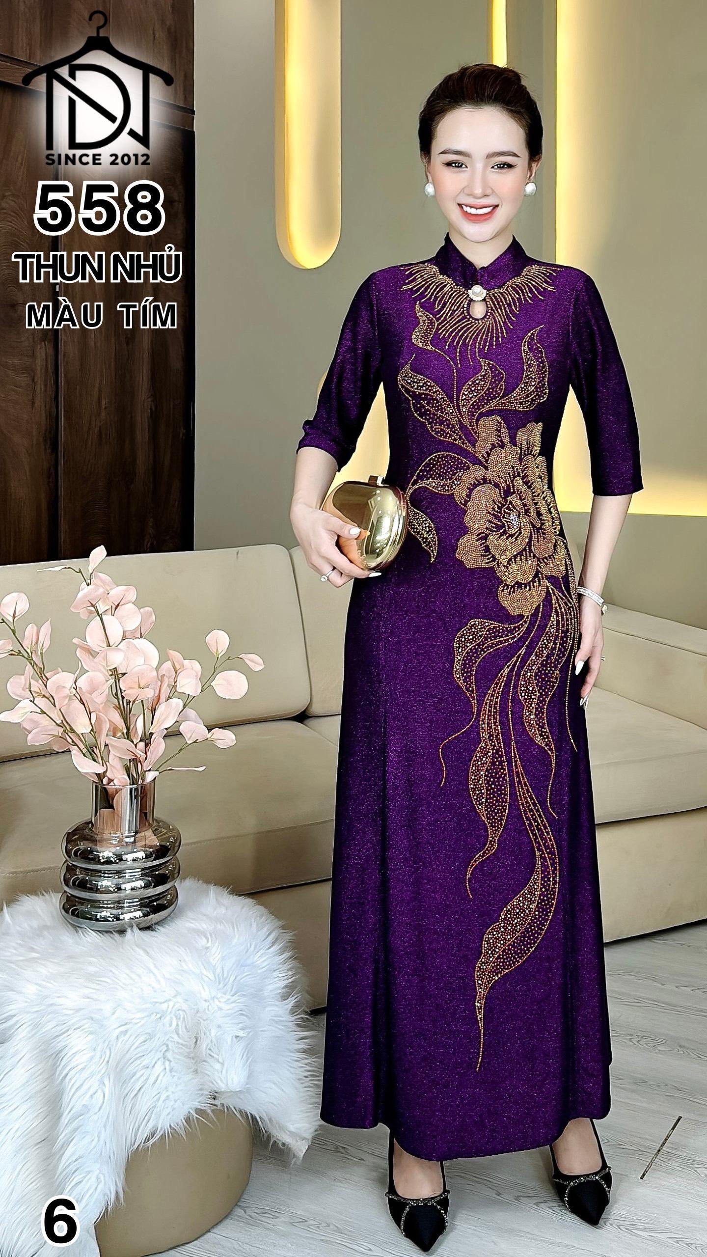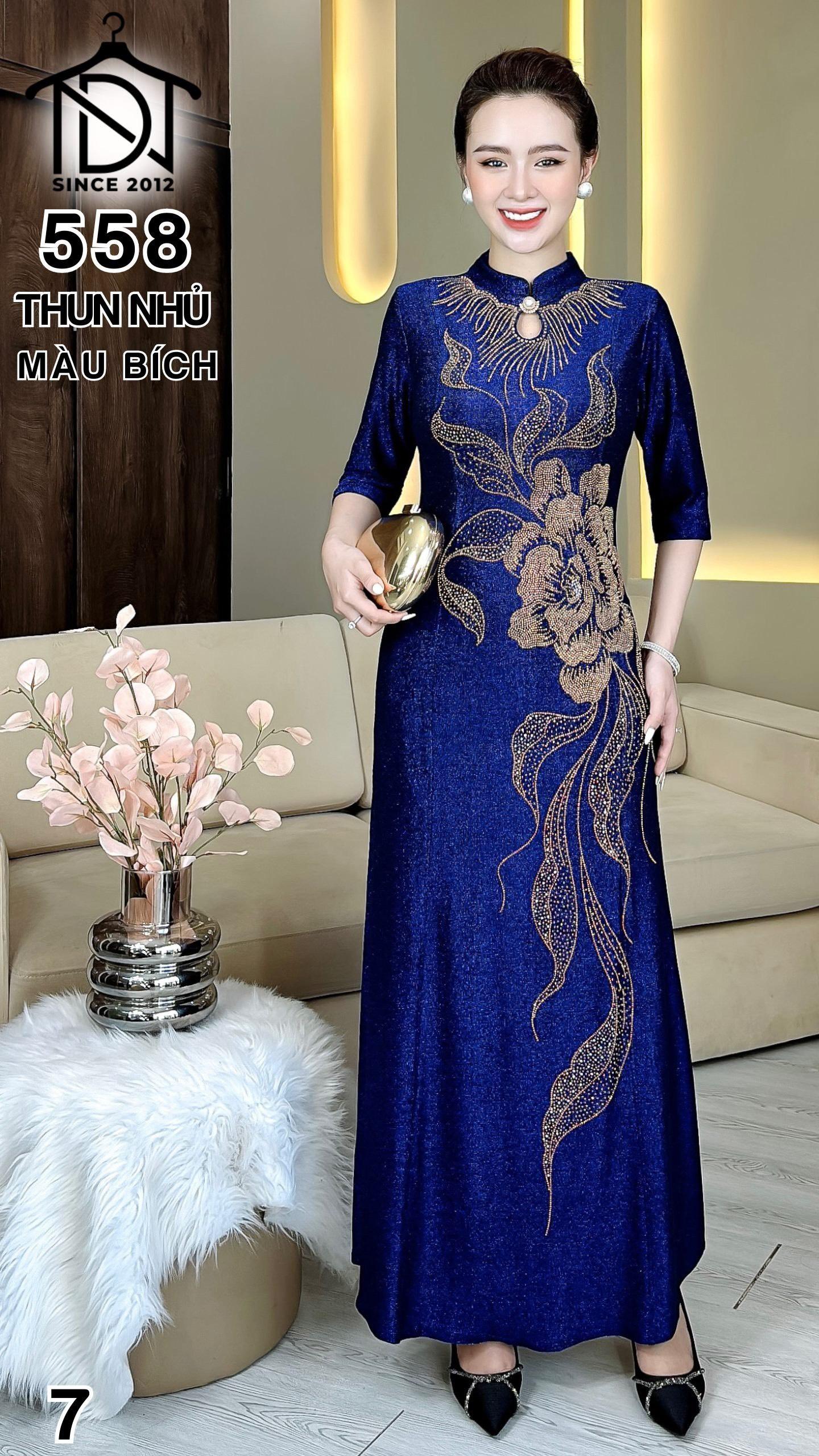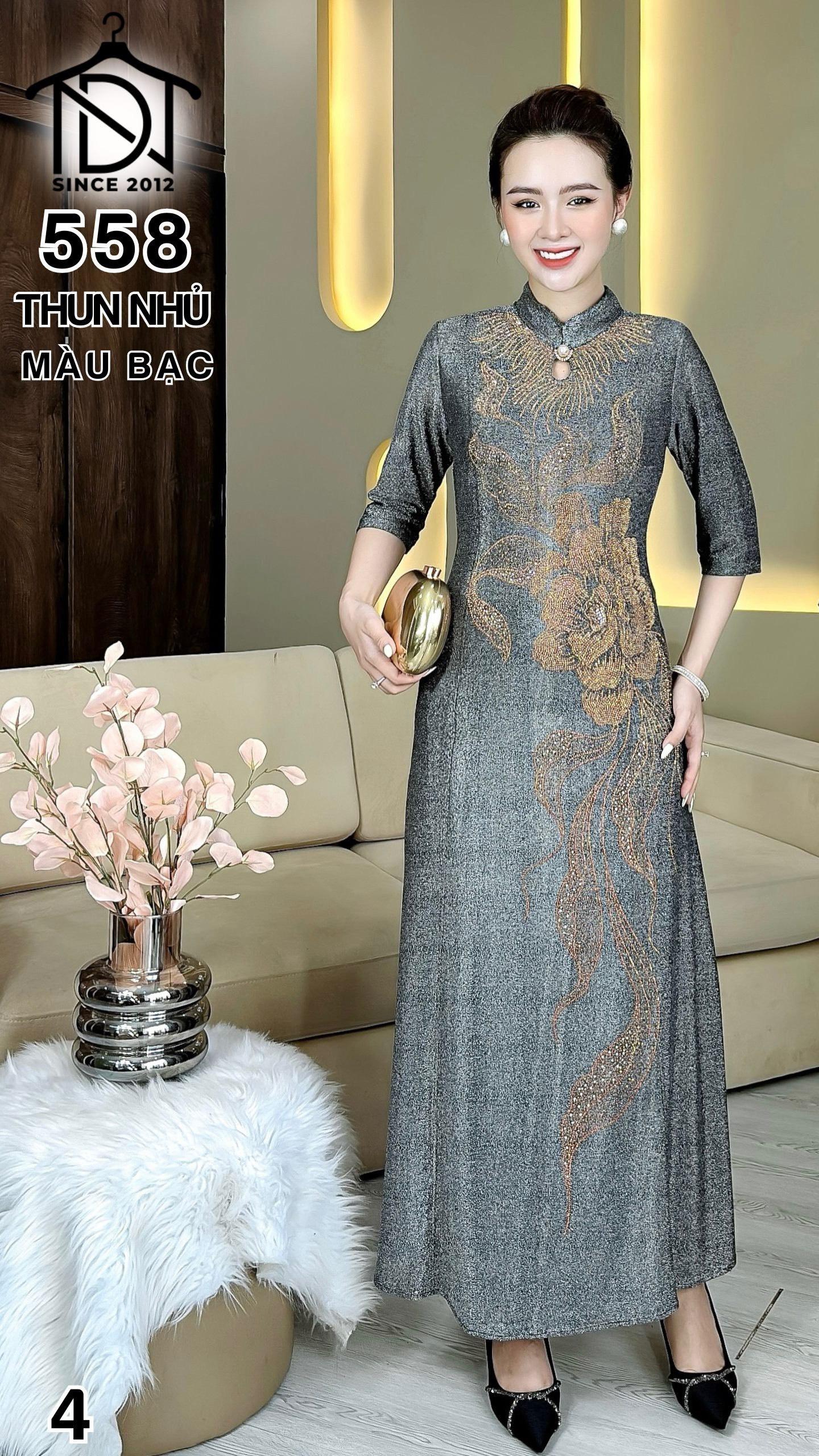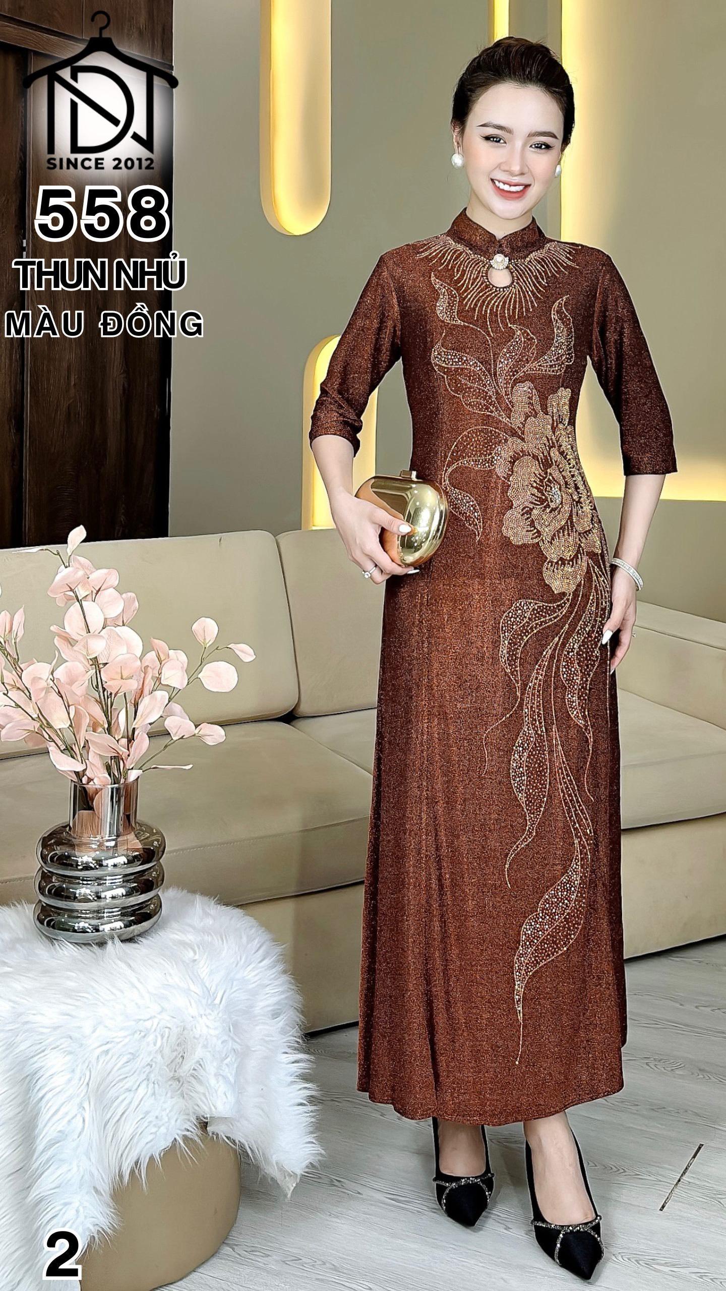 Đầm cách tân trung niên dự tiệc sang trọng vải thun nhũ cao cấp tặng mẹ co giãn tốt bigsize 75kg M558