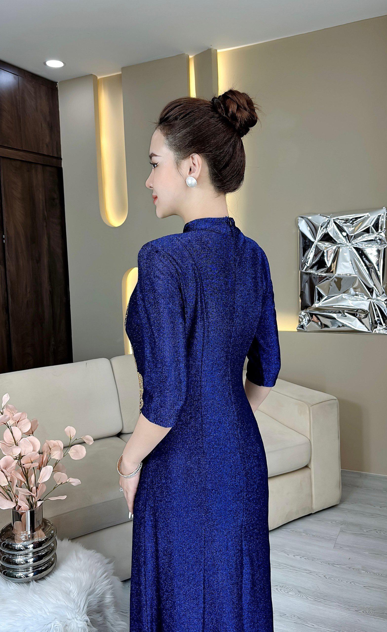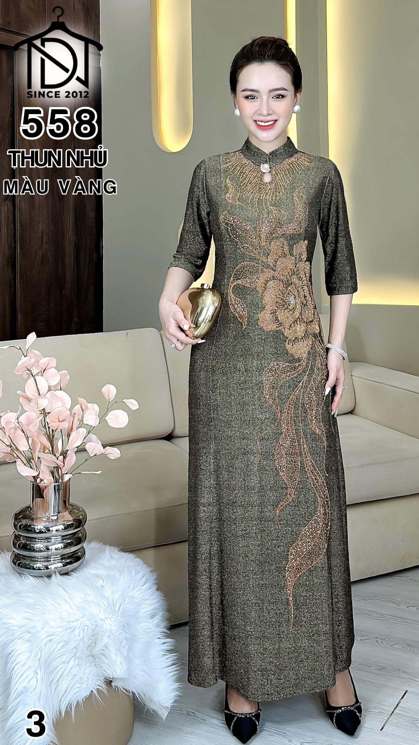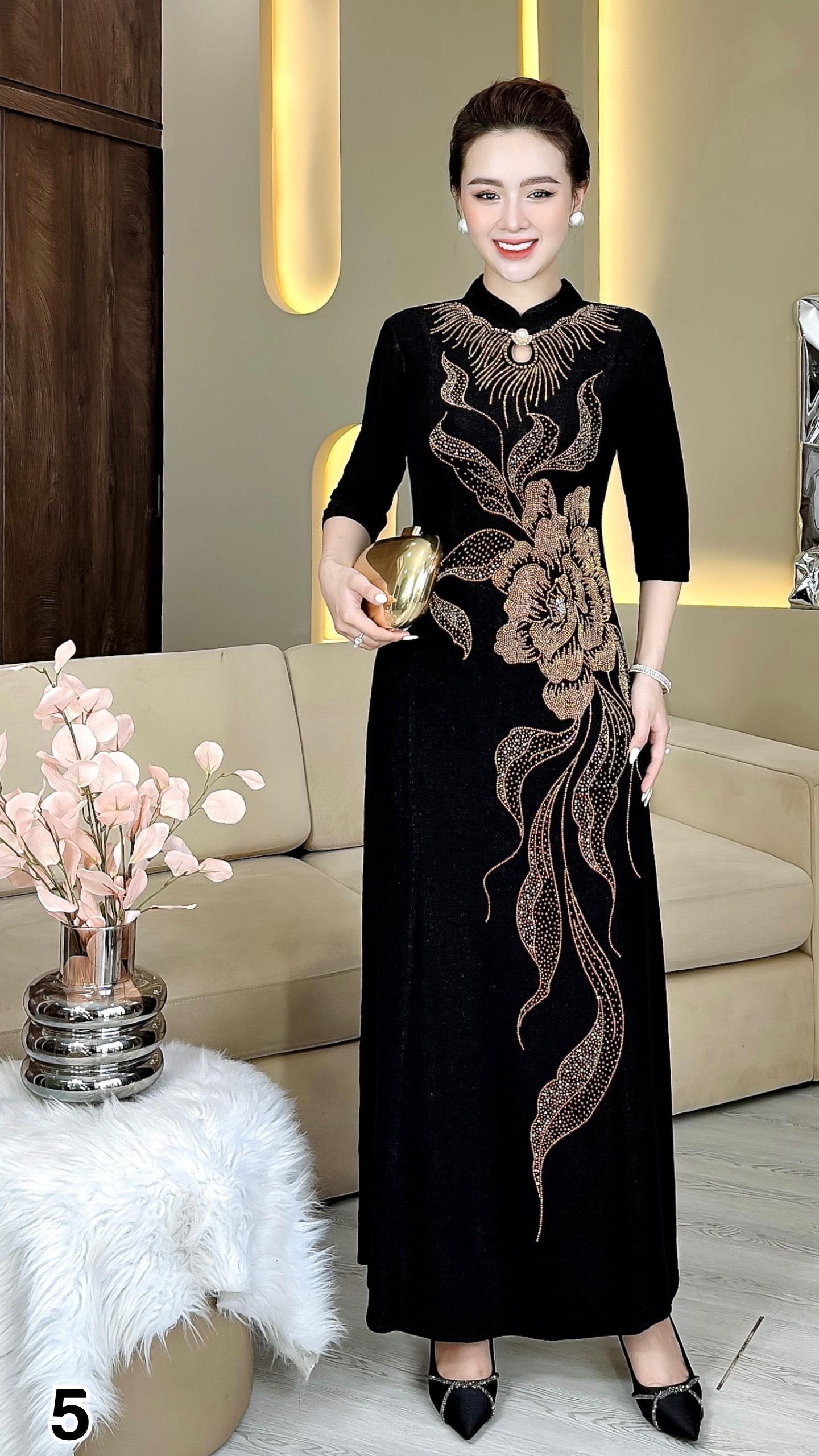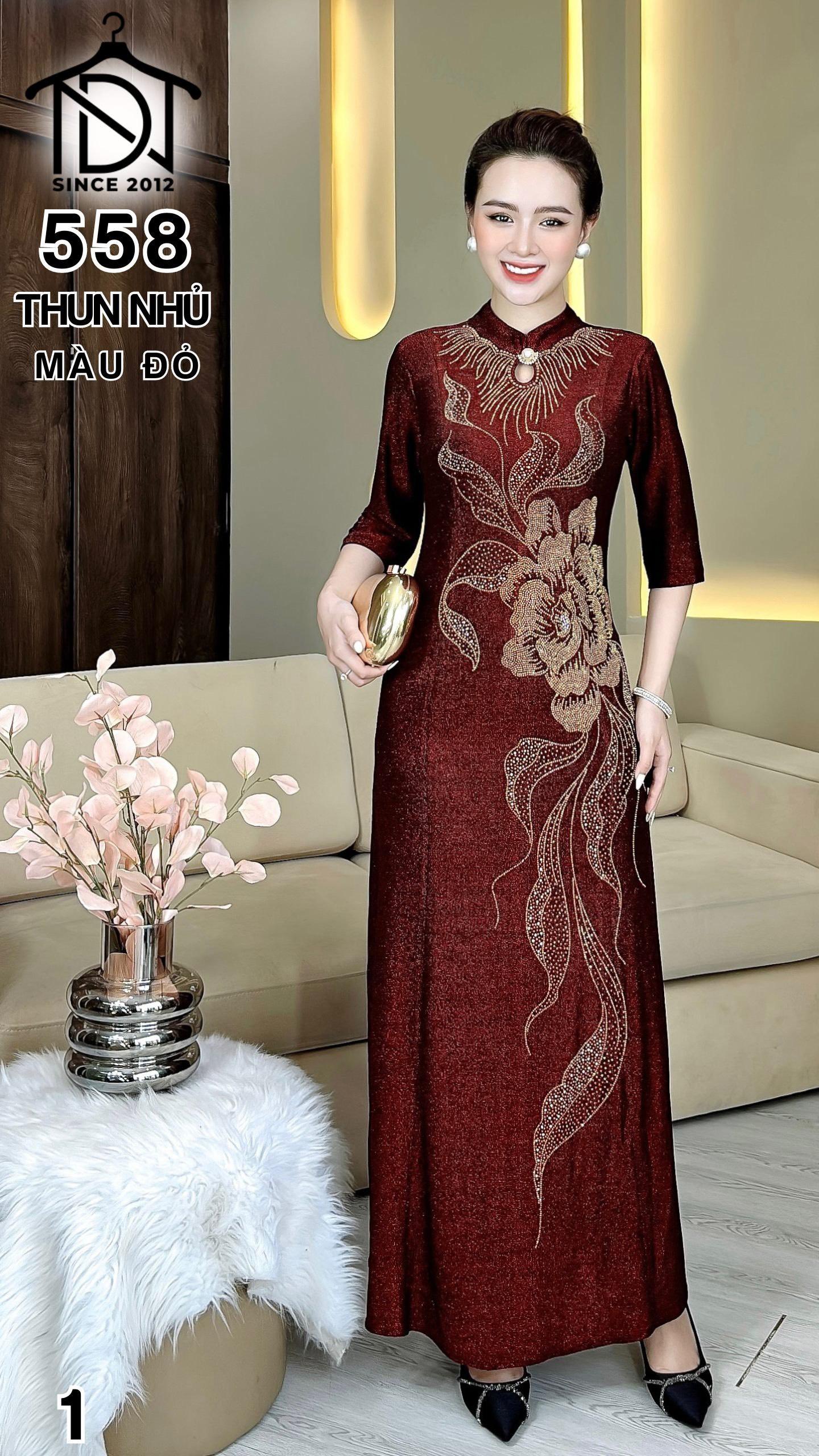 Đầm cách tân trung niên dự tiệc sang trọng vải thun nhũ cao cấp tặng mẹ co giãn tốt bigsize 75kg M558