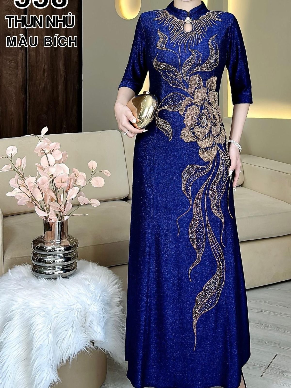 Đầm cách tân trung niên dự tiệc sang trọng vải thun nhũ cao cấp tặng mẹ co giãn tốt bigsize 75kg M558