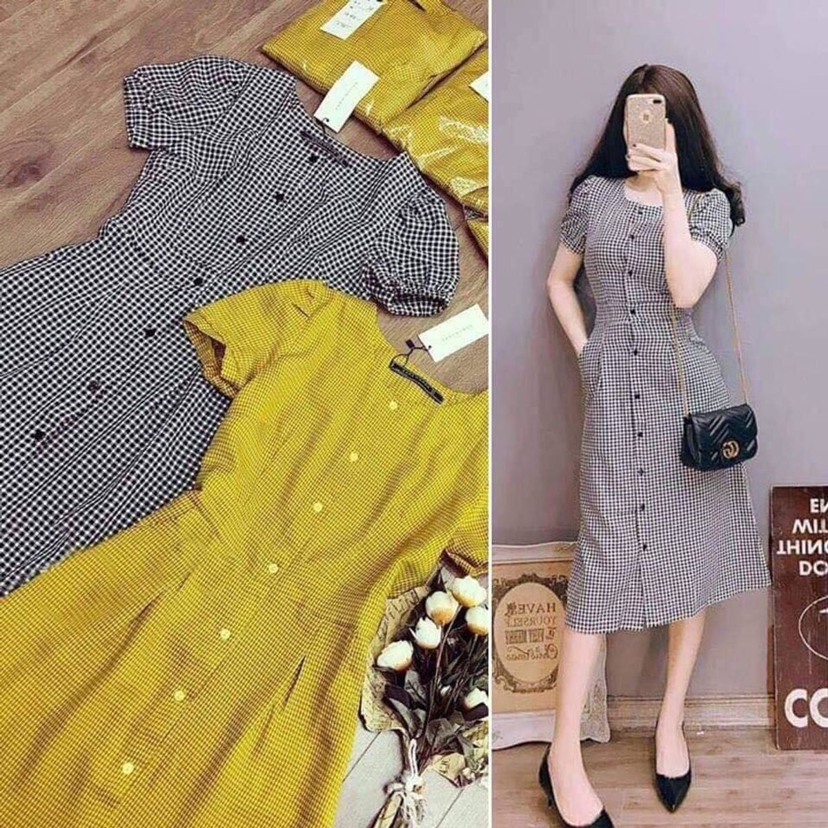 ĐẦM CARO CÀI NÚT GIỮA THÂN giá sỉ - giá bán buôn
