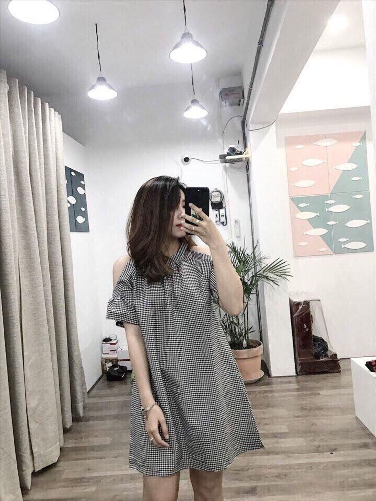 Đầm caro hở vai Giá: 150k Freesize / / : Mình bán online tại HCM, tất cả đều là hàng order Hàng có sau 2 - 3 ngày đặt Cam kết HÀNG ĐẸP, GIÁ TỐT