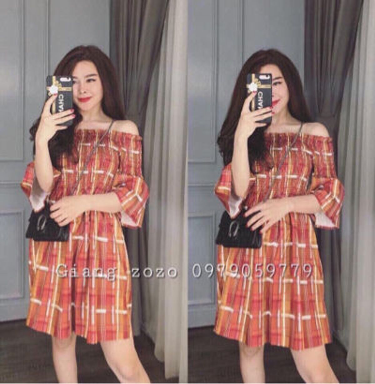 ĐẦM CARO NHÚN CHỈ TRỄ VAI giá sỉ/bán buôn