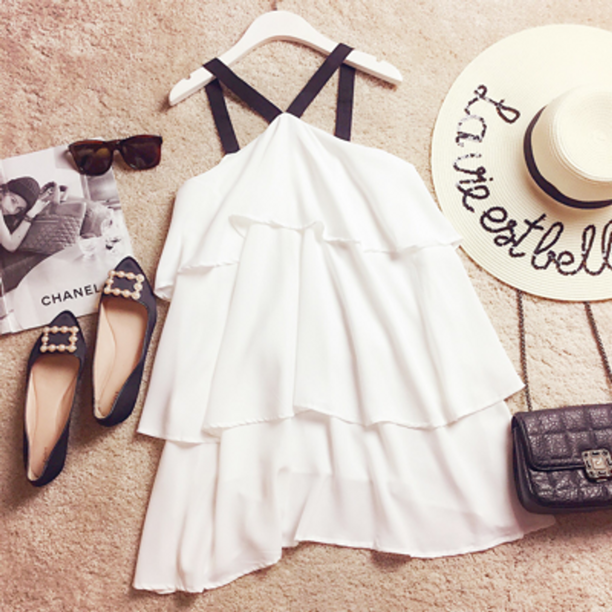 Đầm cát hàn trơn cổ yếm giá sỉ/bán buôn