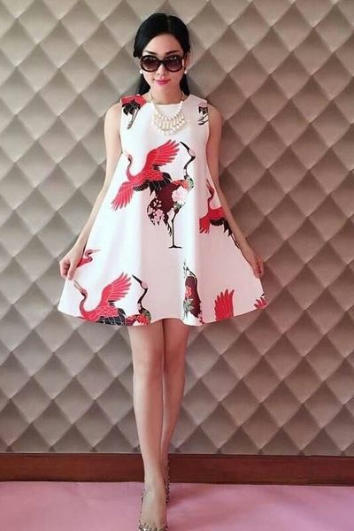 Đầm chữ a họa tiết chim hạc p73-210 giá sỉ/bán buôn