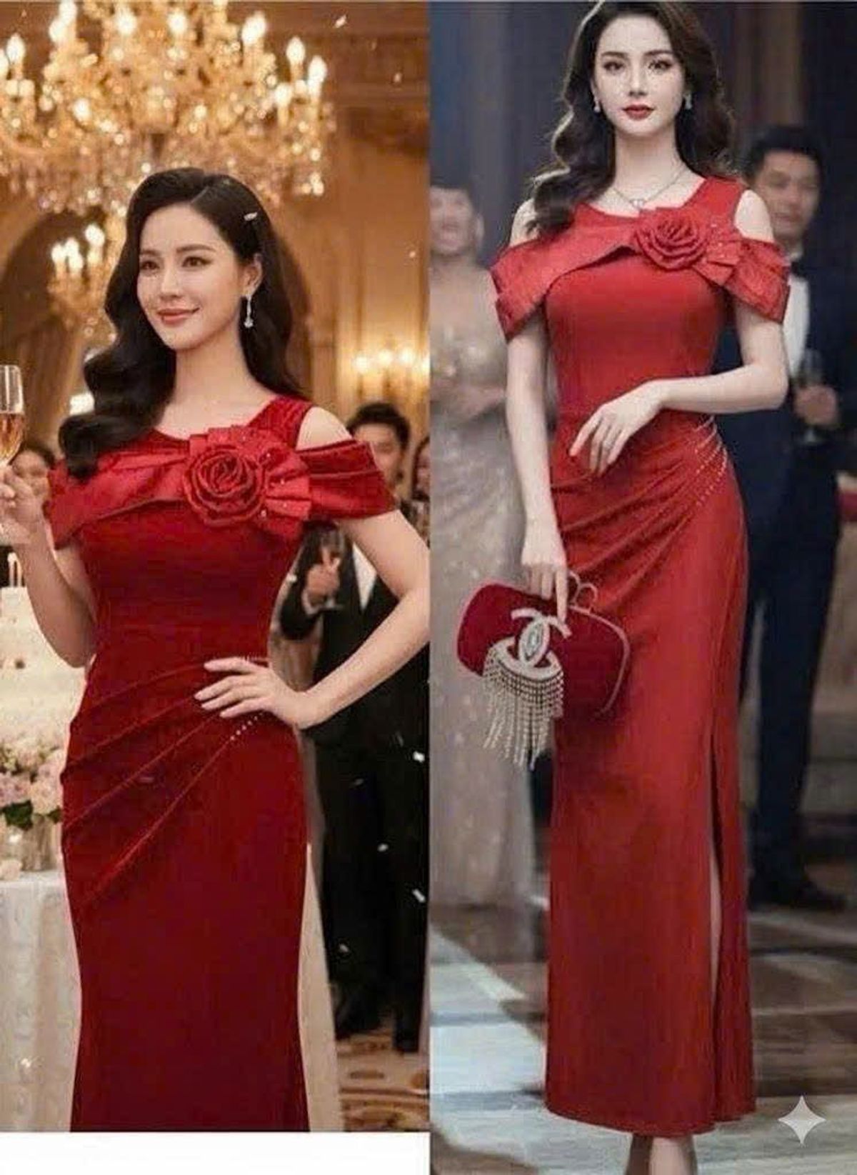 Đầm dạ hội kèm bông cườm vai thiết kế sang trọng hàng cao cấp