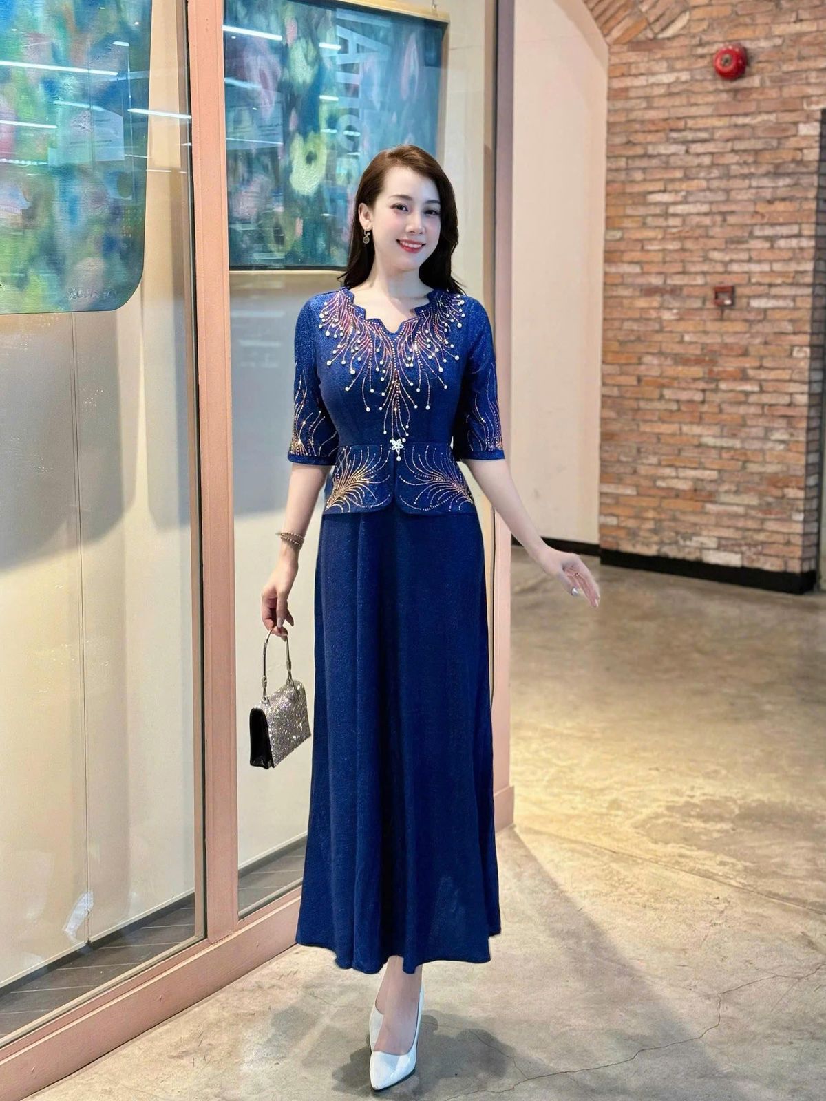 Đầm dạ hội trung niên chất liệu thun nhũ co giãn cực tốt. cho mẹ dự tiệc sang trọng bigsize M543