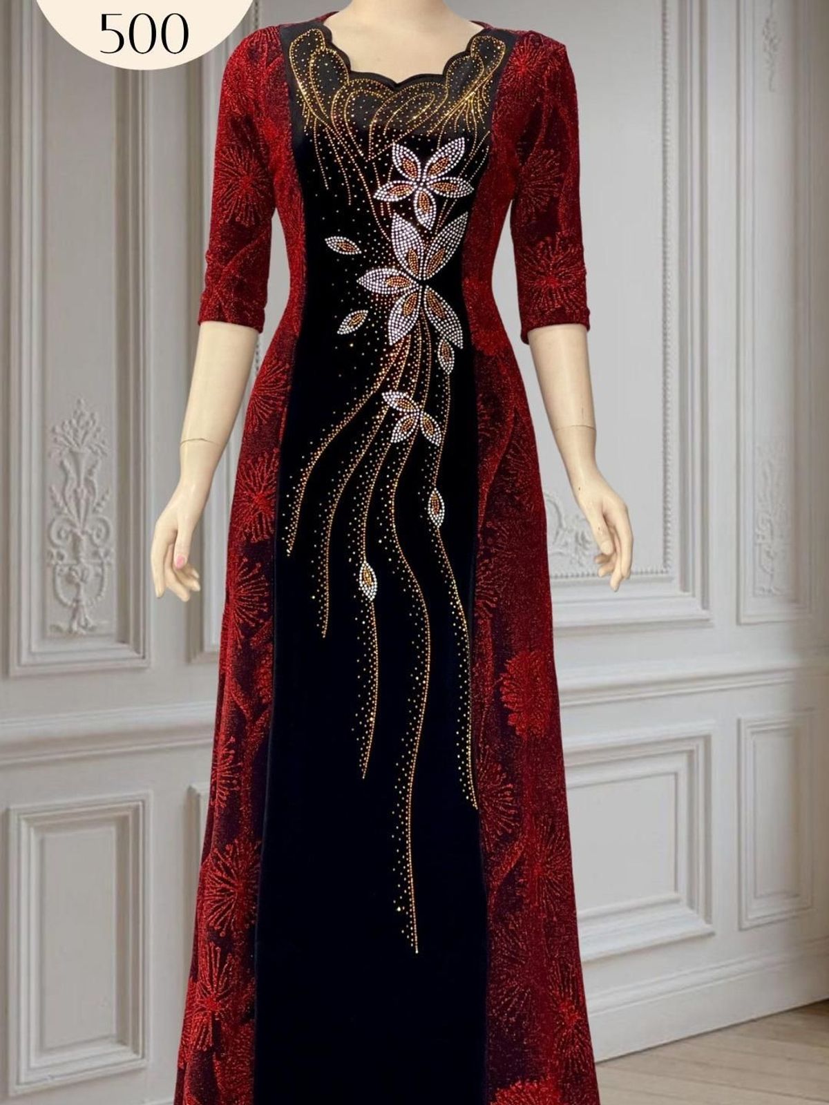 - Chất liệu: Nhũ kim sa phối nhung
