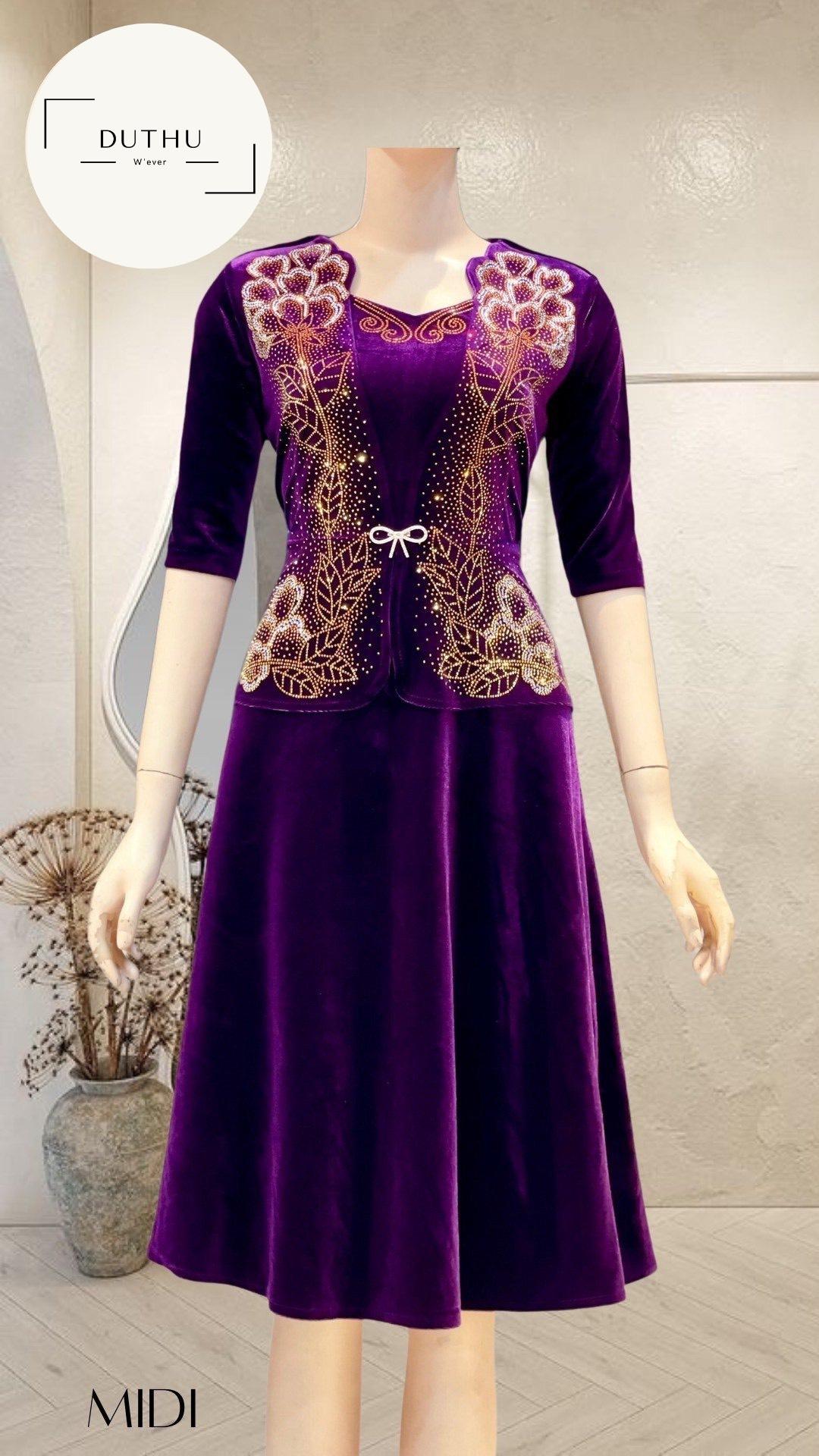 Đầm dạ hội trung niên chất Nhung co giãn cực tốt, đính đá cao cấp cho mẹ dự tiệc sang trọng bigsize DN24 Voan Nữ giá sỉ - giá bán buôn
