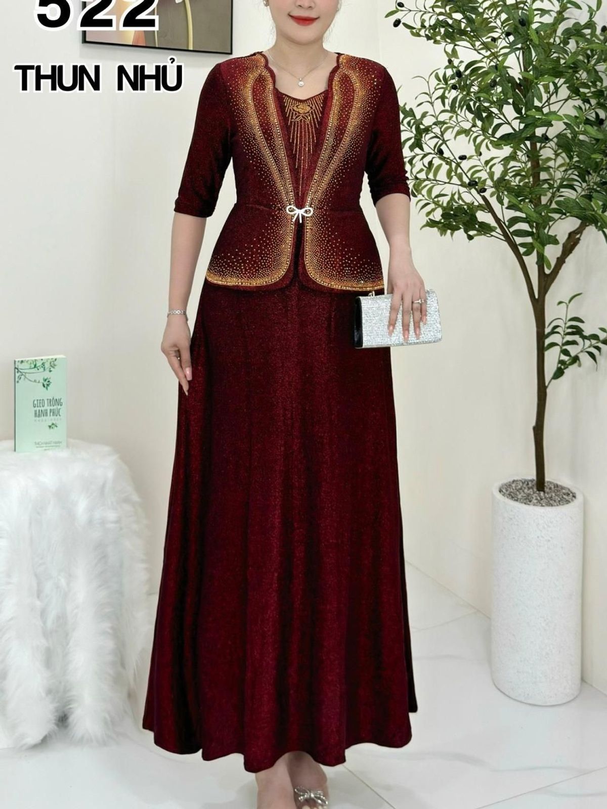 1. Chi tiết sản phẩm: Đầm dạ hội trung niên cho mẹ dự tiệc sang trọng bigsize cao cấp M522