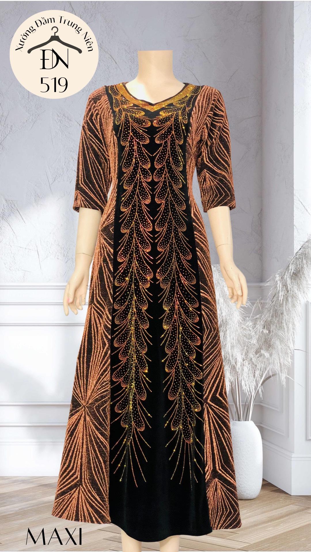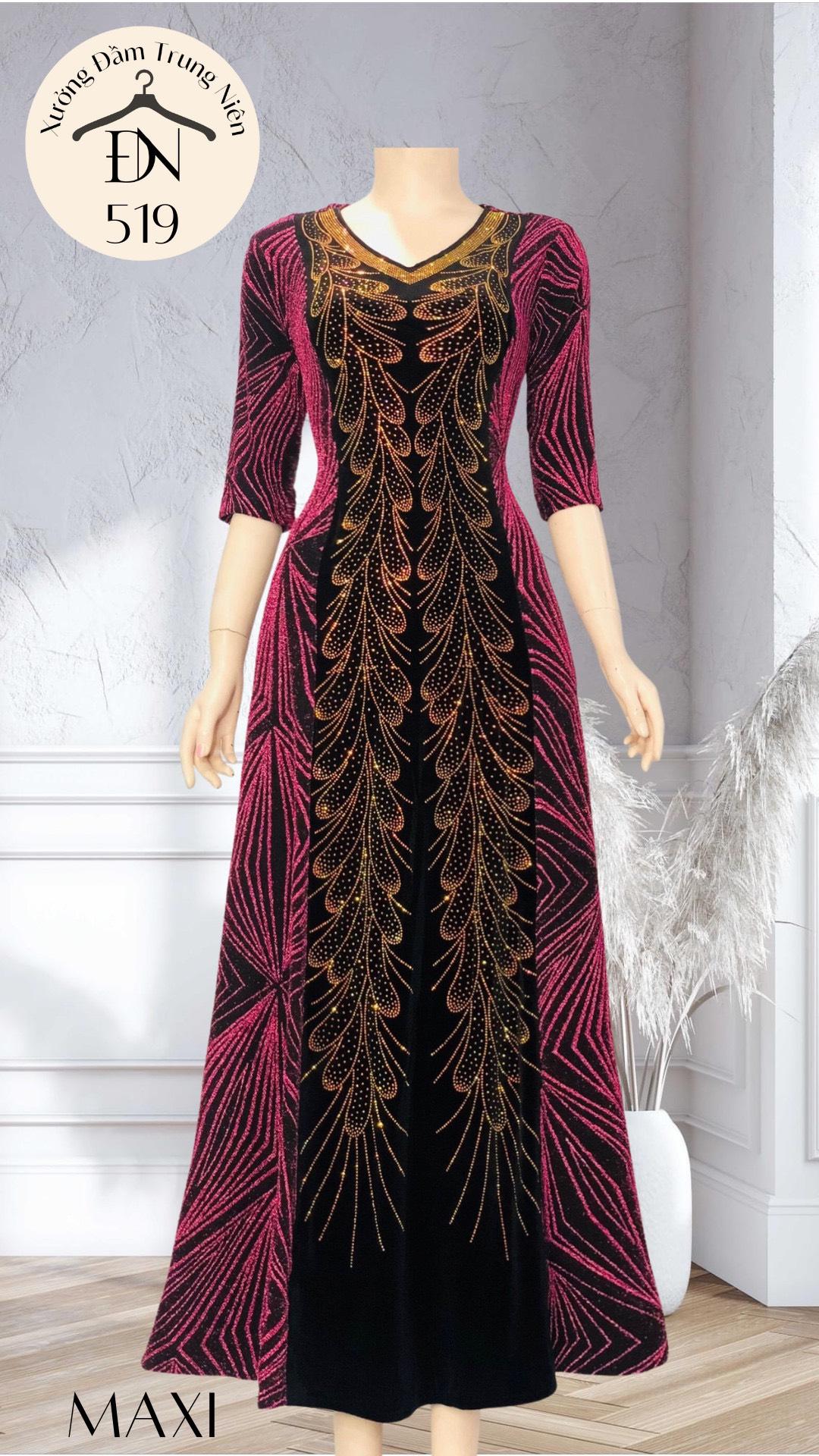 Chất liệu: Nhũ kim sa phối Nhung, đính đá tinh tế, chất vải có tính co - giãn linh hoạt, thấm hút mồ hôi tốt - thoáng mát.