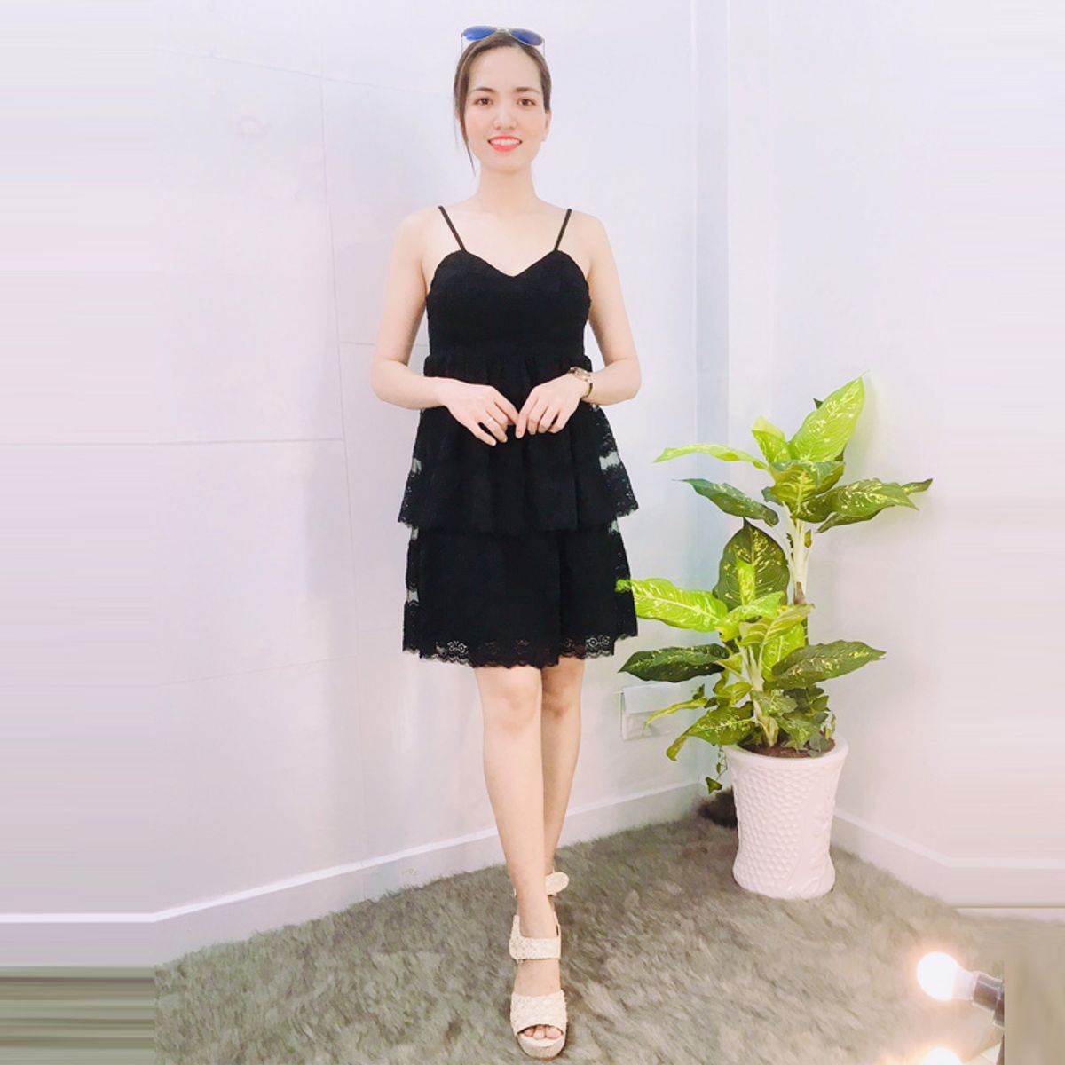 Đầm đen ren dự tiệc 2 tầng chân ren