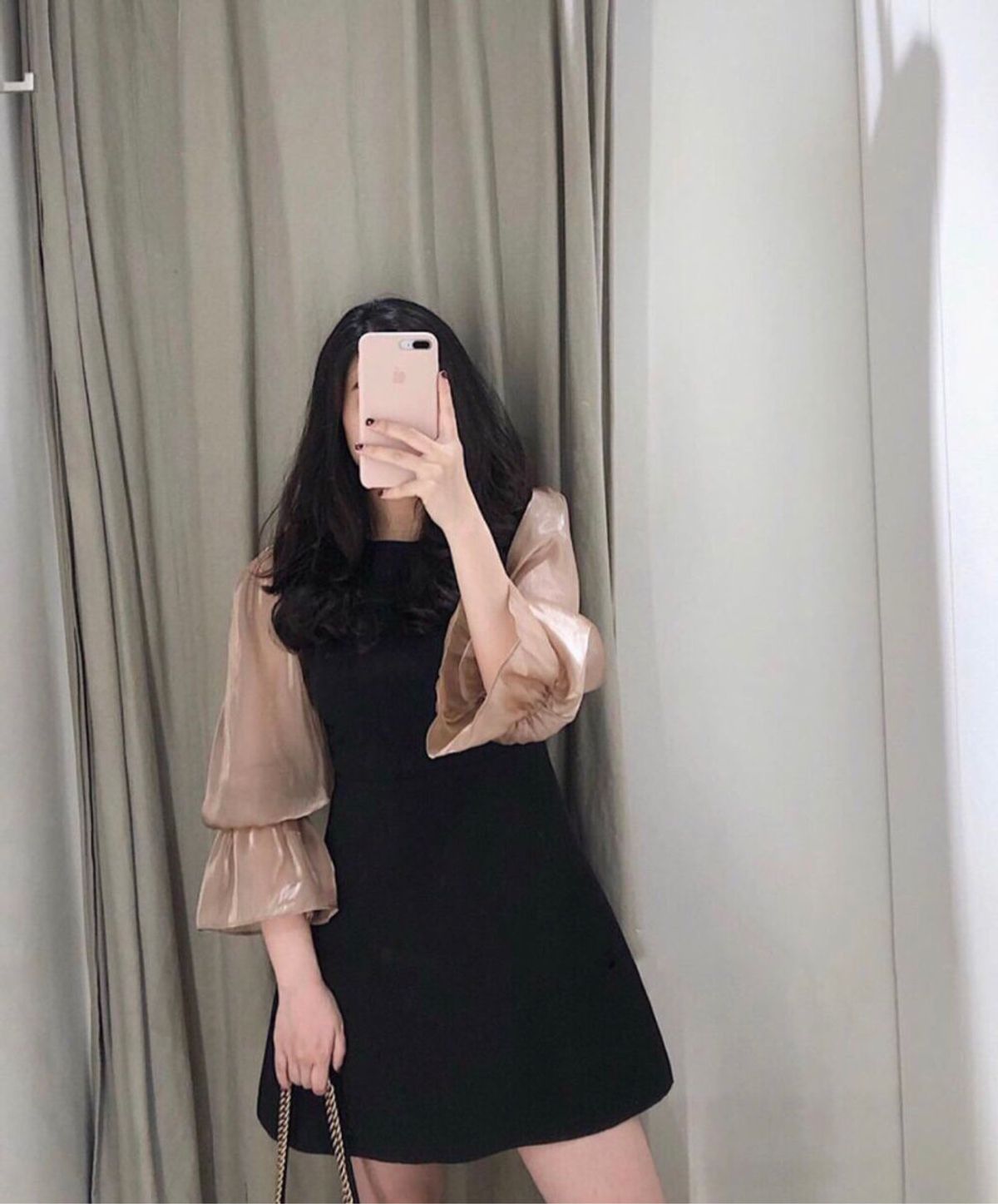 Đầm đen tay phối nude giá sỉ/bán buôn