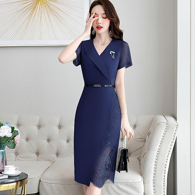 Đầm dự tiệc cổ vest phối ren sang trọng phong cách Hàn Quốc trẻ trung hiện đại hợp xu hướng HN01 Kem Nữ giá sỉ/bán buôn