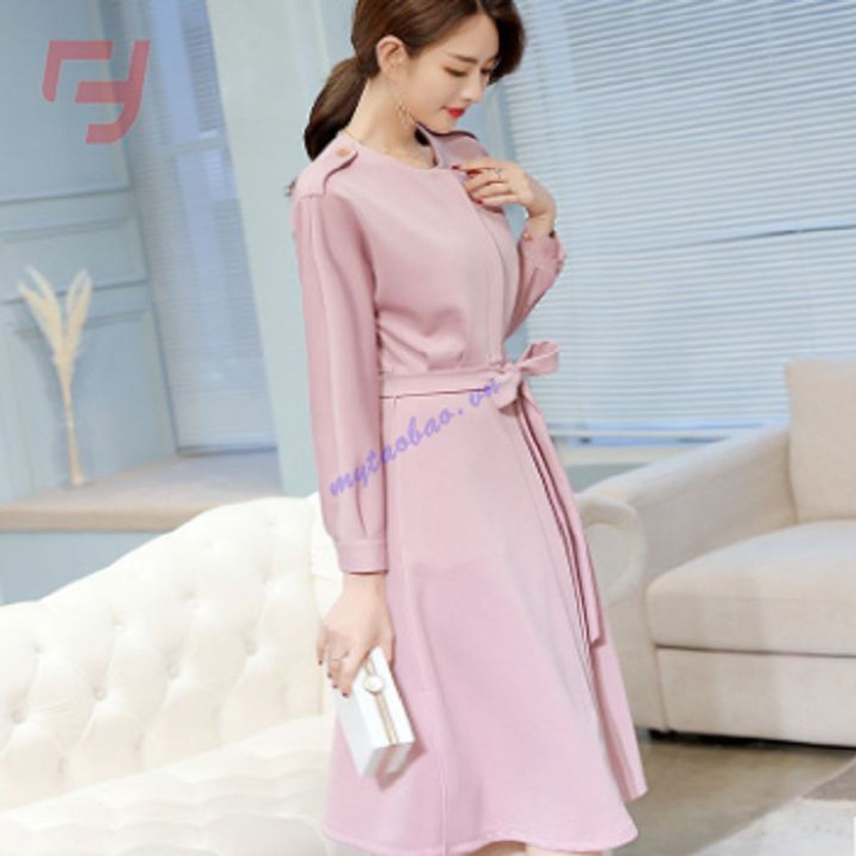 Thiết kế kiểu dáng đơn giản nhưng tinh tế với cổ tròn, phần tay áo được thiết kế theo kiểu tay dài cổ tay được bo lại nhìn rất dễ thương tạo nên nét đẹp nước Hàn Quốc. Phần thân đơn giản cộng thêm phần eo được thắt chiếc nơ cùng màu sắc khiến cho chiếc đầm trở nên sắc sảo tạo nên vẽ đẹp quyến rũ , và chủ nhân của nó mặc vào tăng lên sự thanh lịch, sang trọng, trang nhã
