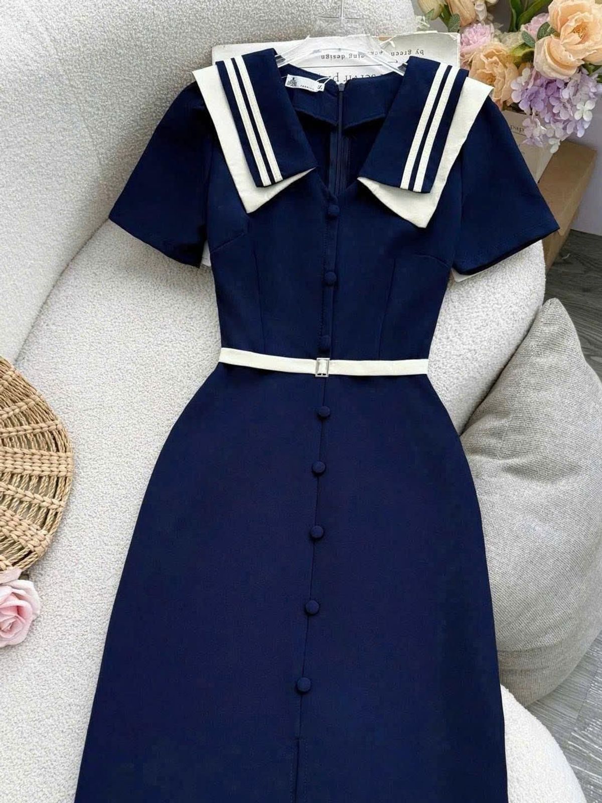 chất liệu: cotton lạnh (thắt lưng may liền vào đầm, chỉ có tác dụng trang trí)