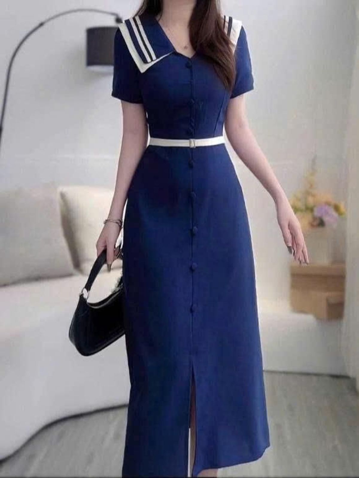 chất liệu: cotton lạnh (thắt lưng may liền vào đầm, chỉ có tác dụng trang trí)