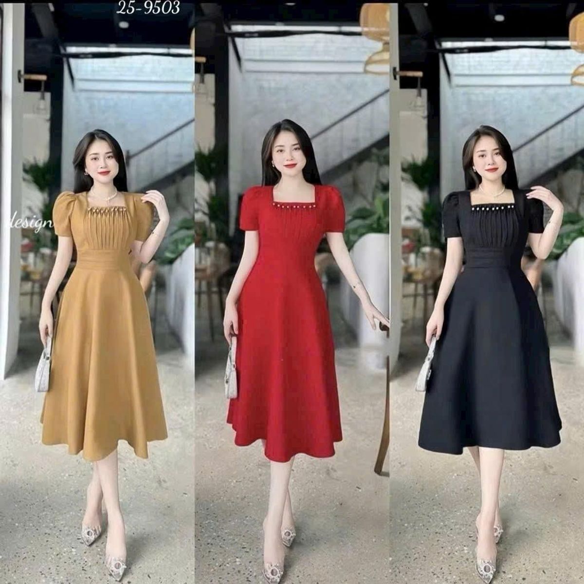 Đầm dự tiệc thiết kế dáng xoè dự tiệc chất liệu cotton lạnh, dáng xoè mềm mại, sang trong,thanh lịch HN85 giá sỉ - giá bán buôn