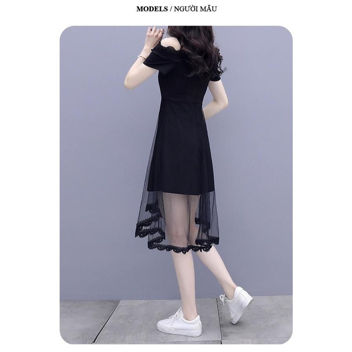 - Chất liệu: Umi dày dặn, co giãn, phối voan