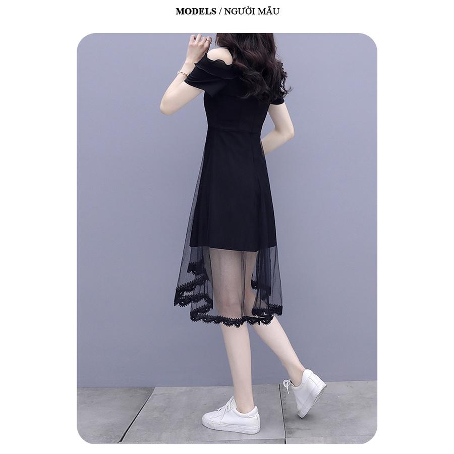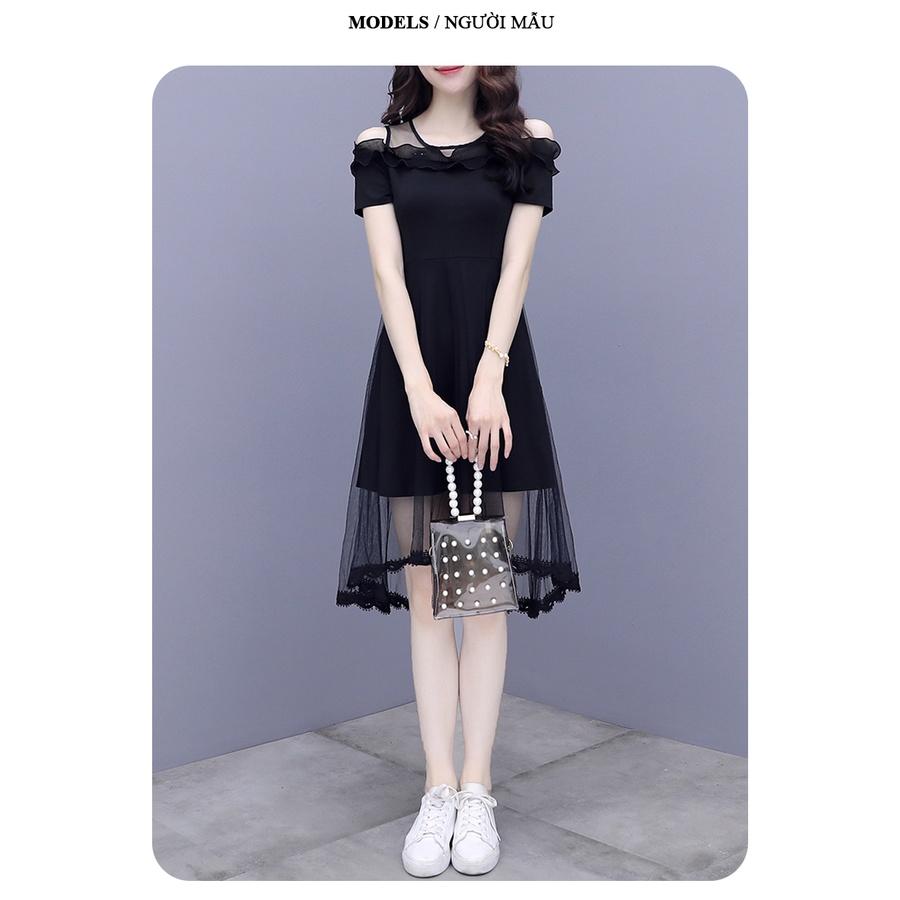 Đầm dự tiệc thiết kế dáng xoè dự tiệc chất liệu umi co giãn phối voan, mềm mại, sang trong,thanh lịch HN06 giá sỉ - giá bán buôn