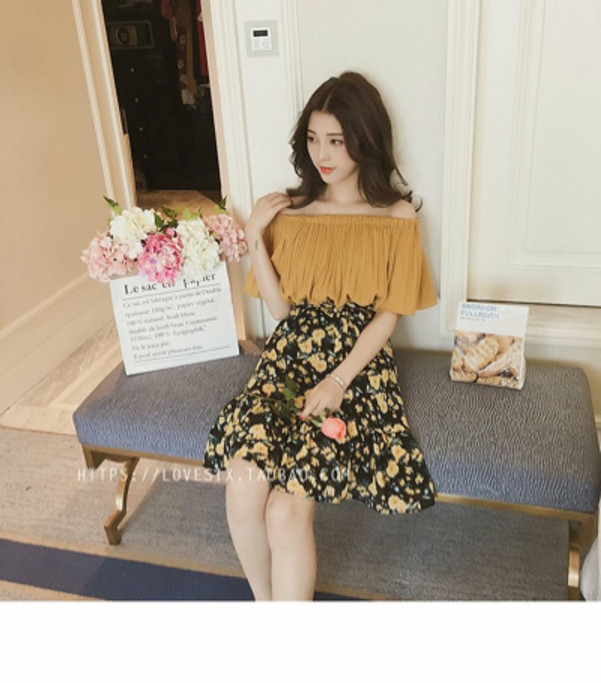 Đầm giả set trễ vai voan hoa giá sỉ - giá bán buôn