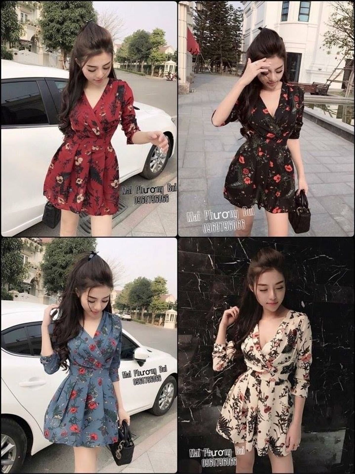 Đầm hoa vạt chéo tay lỡ, dáng bồng ly cực xinh. Hàng QC. 4 màu như hình.