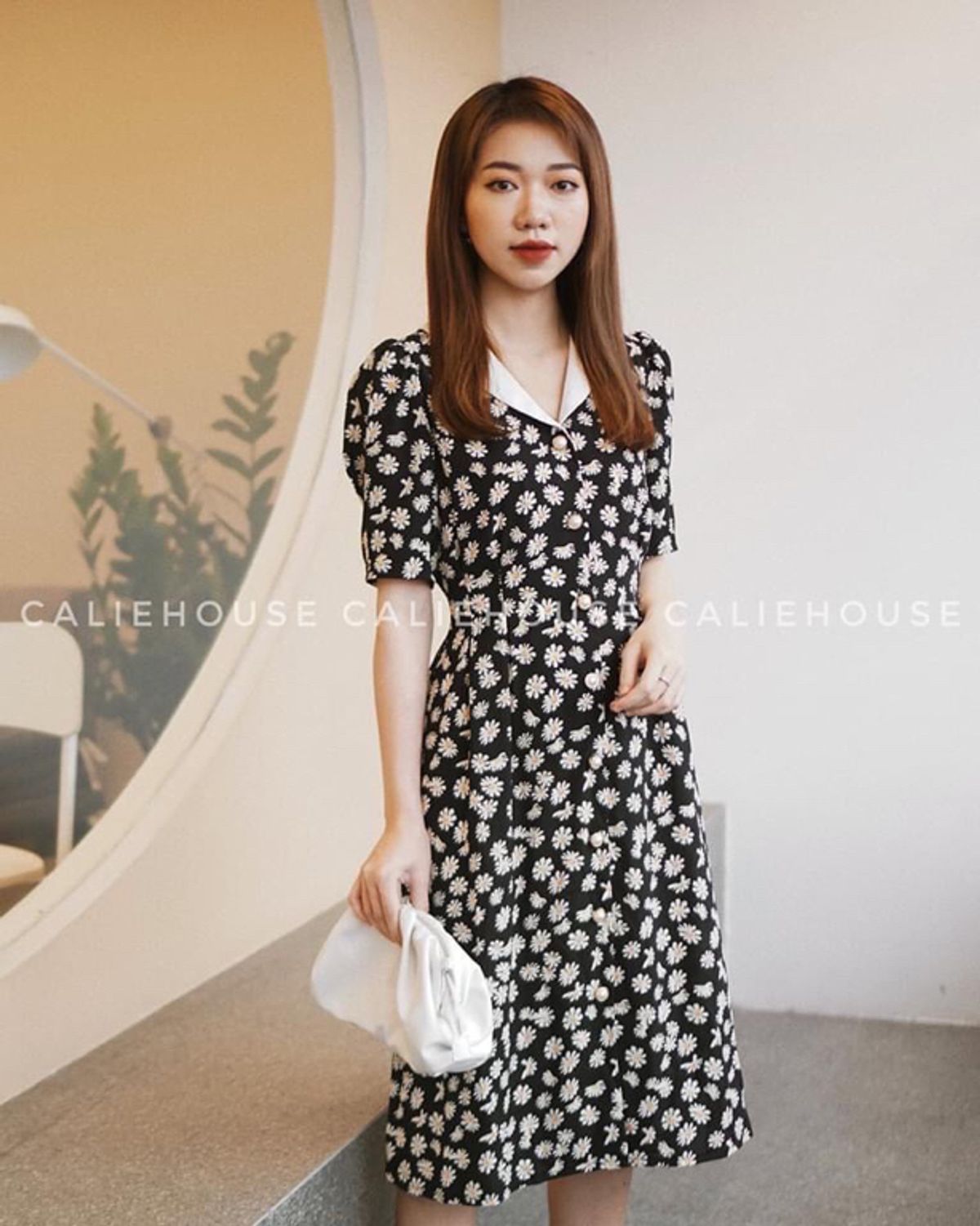 Đầm hoa cúc trắng đen giá sỉ/bán buôn
