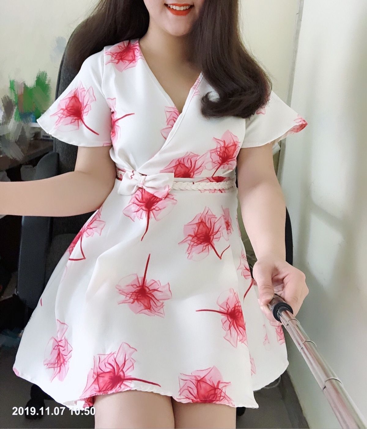 Đầm xòe dáng ngắn đẹp như thế này để vừa mang lại cảm giác thoải mái lại vừa tạo cho mình được một vẻ ngoài thật xinh tươi và trẻ trung hơn dù ở bất cứ nơi đâu.Đây là kiểu thời trang khá nổi bật và có sức hút đáng kể.Có dây thắt nơ tuỳ chỉnh độ rộng ôm nạ
