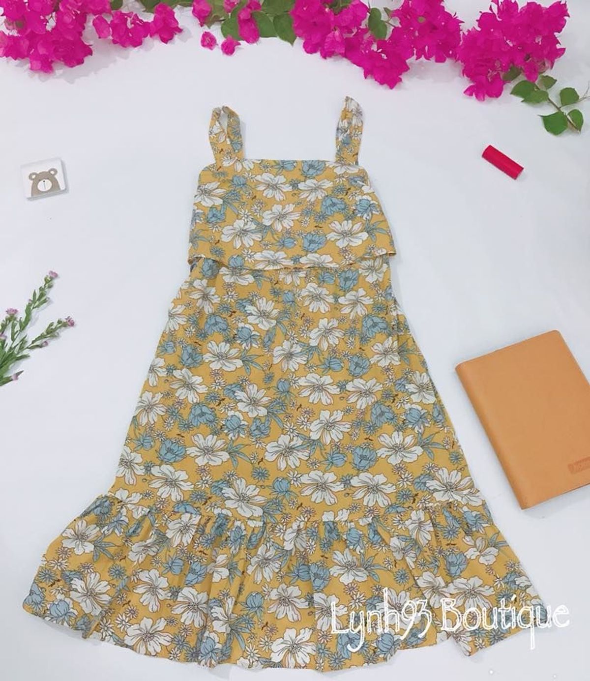 ĐẦM CỘT NƠ HOA HAI MÀU FREE SIZE
