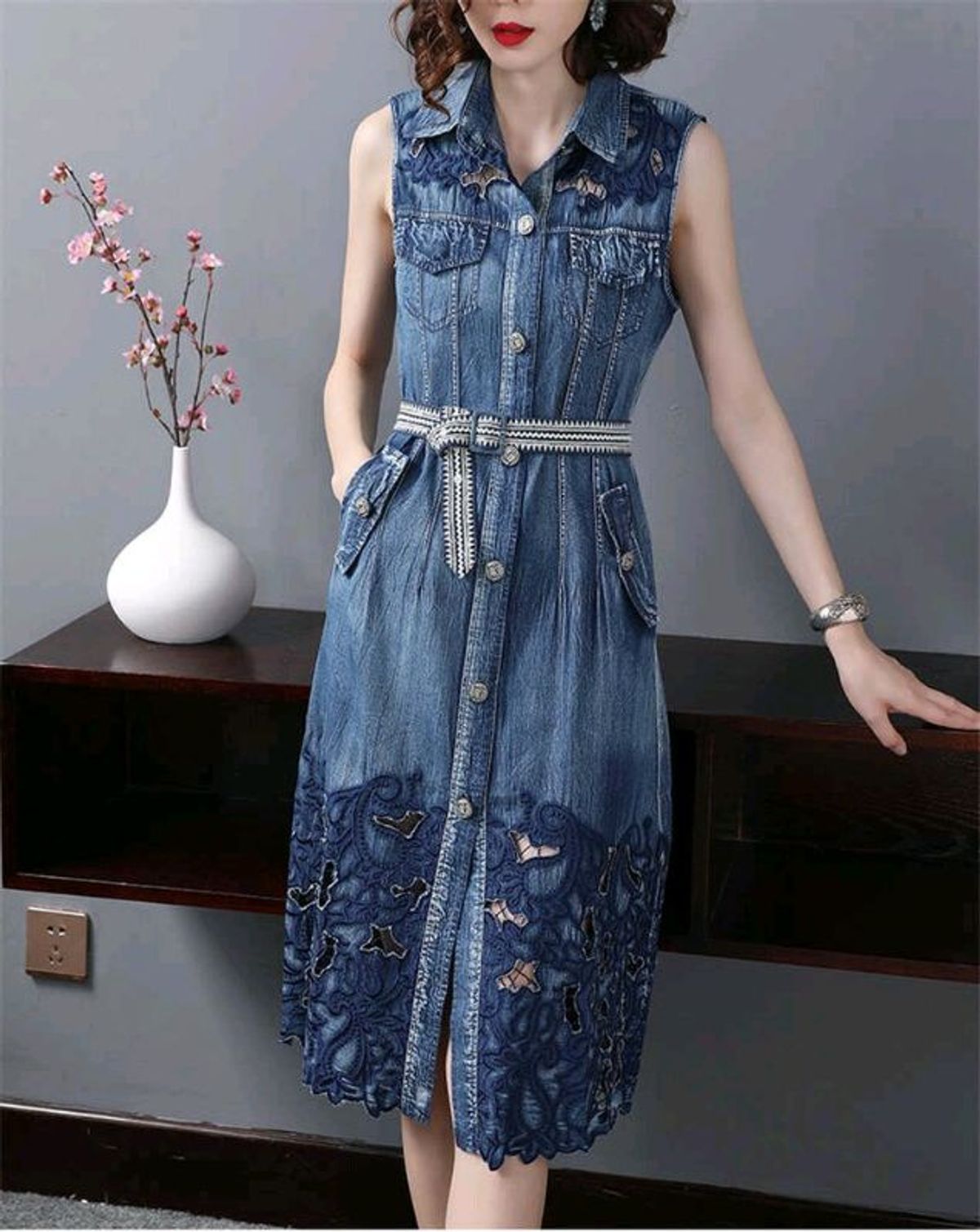 ĐẦM JEAN THÊU SÁT NÁCH CAO CẤP