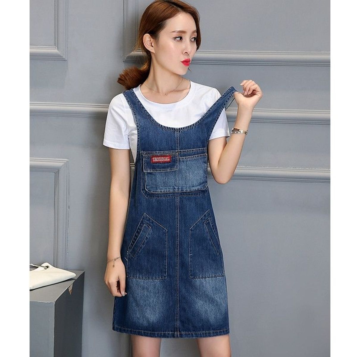 -Đầm yếm jean với form dáng suông giúp bạn gái tự tin dạo phố, đi học hay đi chơi cùng bạn bè