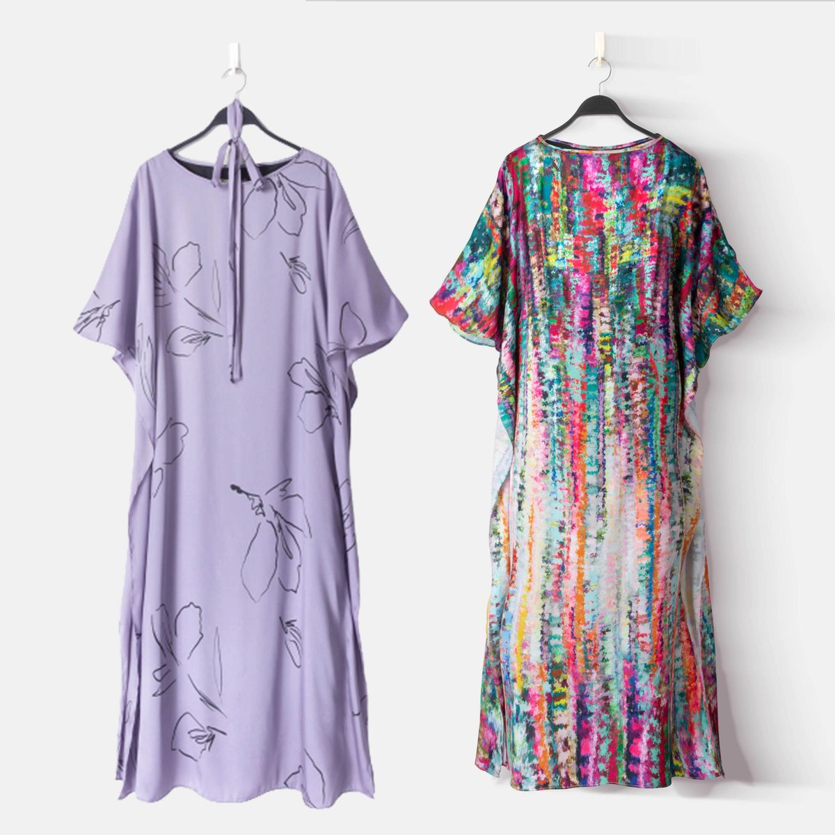 - Kiểu dáng: Phom đầm rộng, tay liền