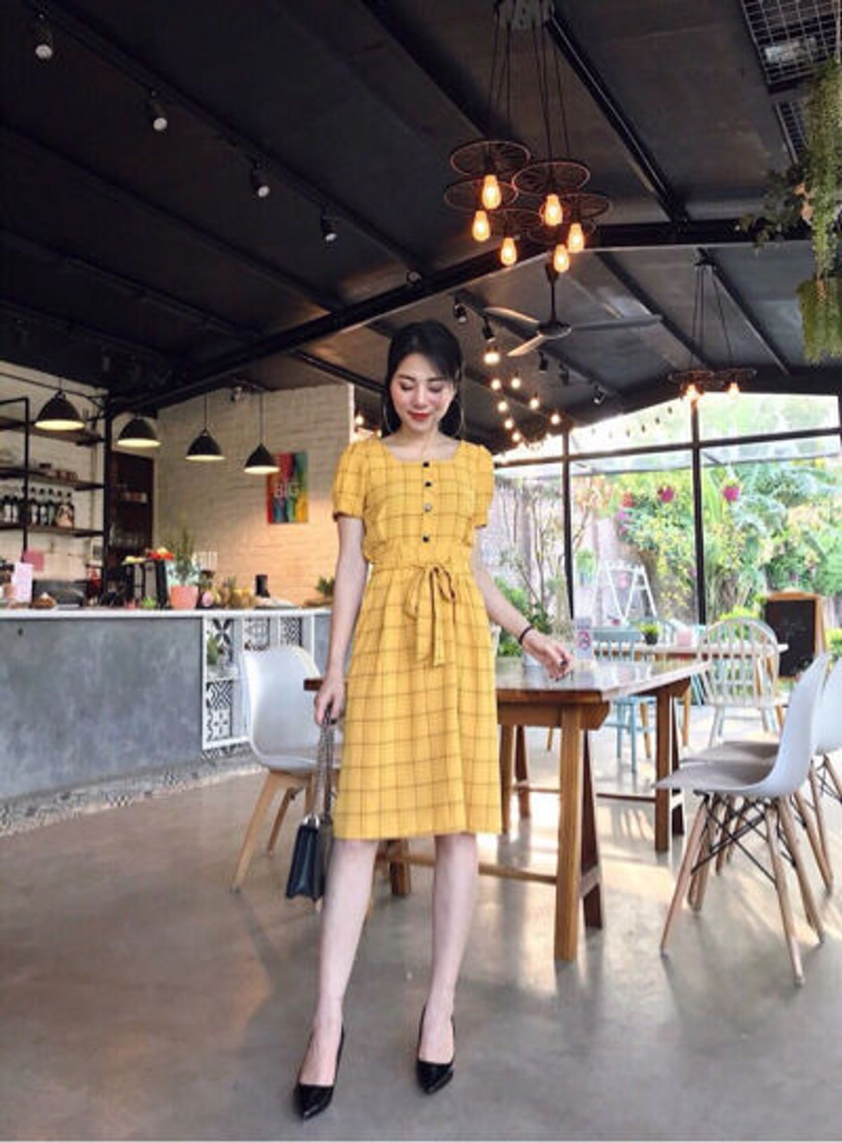 Đầm kẻ caro cúc giả giá sỉ - giá bán buôn