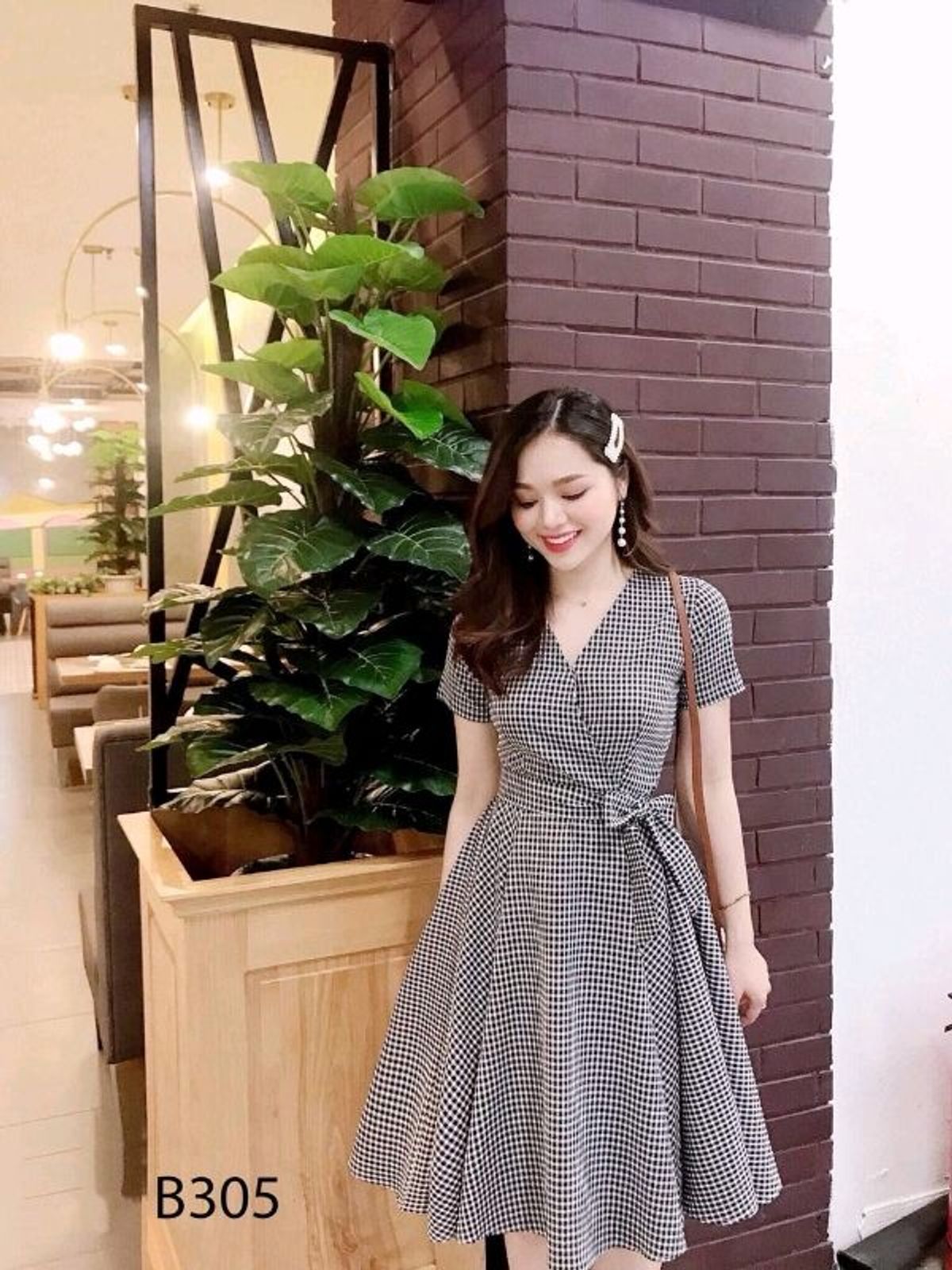 Đầm kẻ xòe dáng xinh giá sỉ/bán buôn